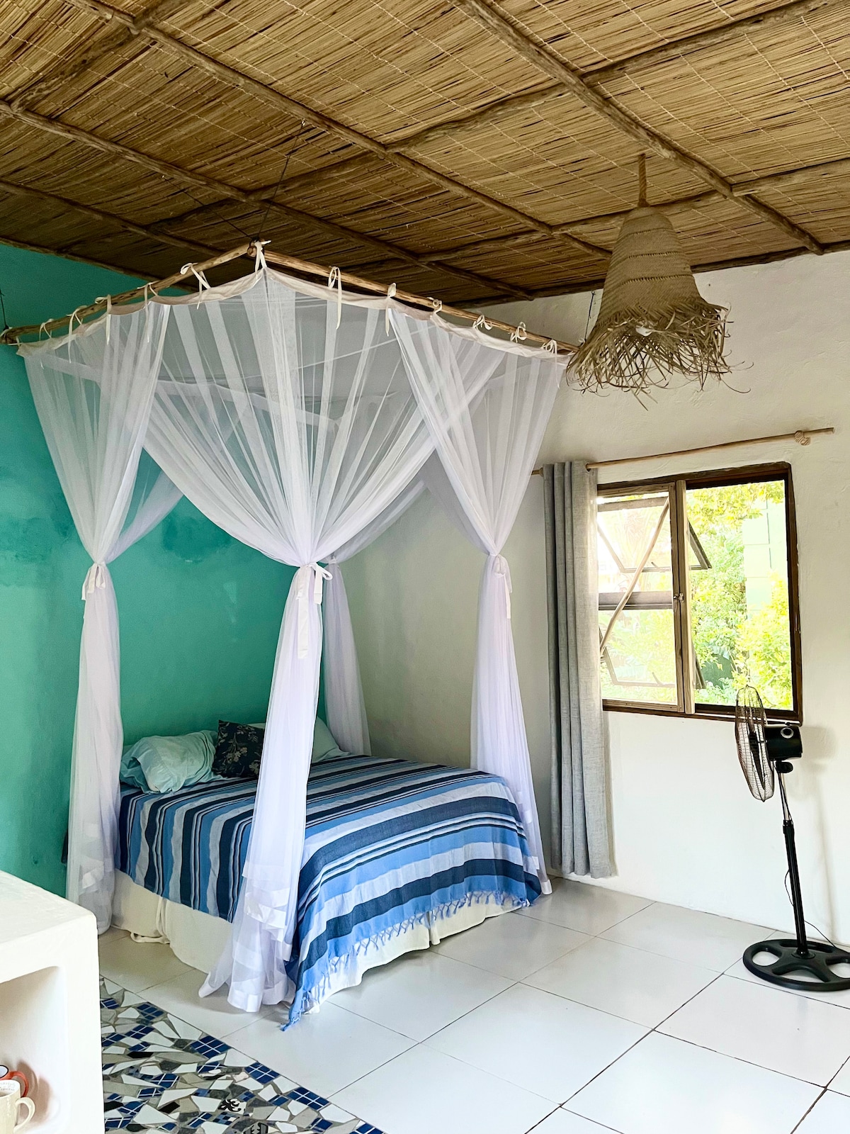В нашем маленьком милом домике, расположенном на территории Jardim Mixara, есть все необходимое для отдыха в течение нескольких дней или недель. Один, пара или небольшая семья с ребенком (старше 5 лет из-за лестницы из овчины). Она окружена постоянно растущим пермакультурным садом, очаровательным видом на Индийский океан и большим пространством, чтобы повесить гамак. Jardim mixara — это небольшой оазис, где можно отдохнуть и восстановить связь с природой и самим собой