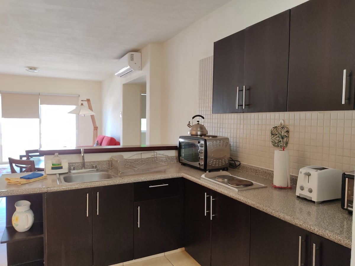 Насладитесь комфортным и спокойным отдыхом в этой уютной квартире, расположенной всего в 10 минутах езды от международного аэропорта Лос-Кабос и самых красивых пляжей, отмеченных Голубым флагом. В распоряжении гостей частная парковка, чистые и функциональные помещения, идеально подходящие для семейного отдыха. Хозяин лично встретит вас по прибытии, чтобы вы чувствовали себя комфортно и уверенно.