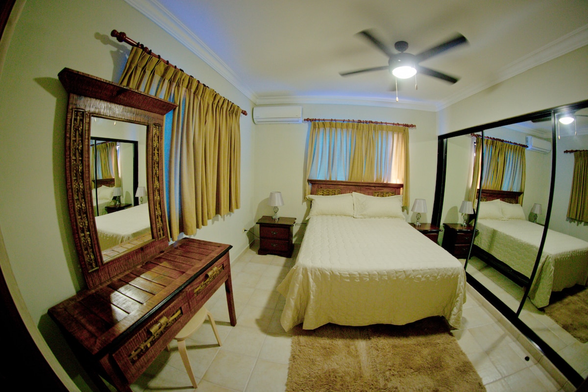 Ваша семья будет близко ко всему, когда вы остановитесь в этом доме, расположенном в центре города. Красивая квартира, 2 комнаты, 1 с двуспальной кроватью размера Queen size, а другая с двумя односпальными кроватями, недалеко от клиники Hospiten. Всего в 15 минутах от аэропорта Пунта-Кана ( PUJ), примерно в 15,220,25,45 минутах от различных пляжей в этом районе. Бесплатный транспорт до и от пляжа медуз по выходным (автобус отправляется из жилого комплекса в 10:00 и возвращается в 17:00 ), супермаркетов и ресторанов - 5,10,15 минут на машине.