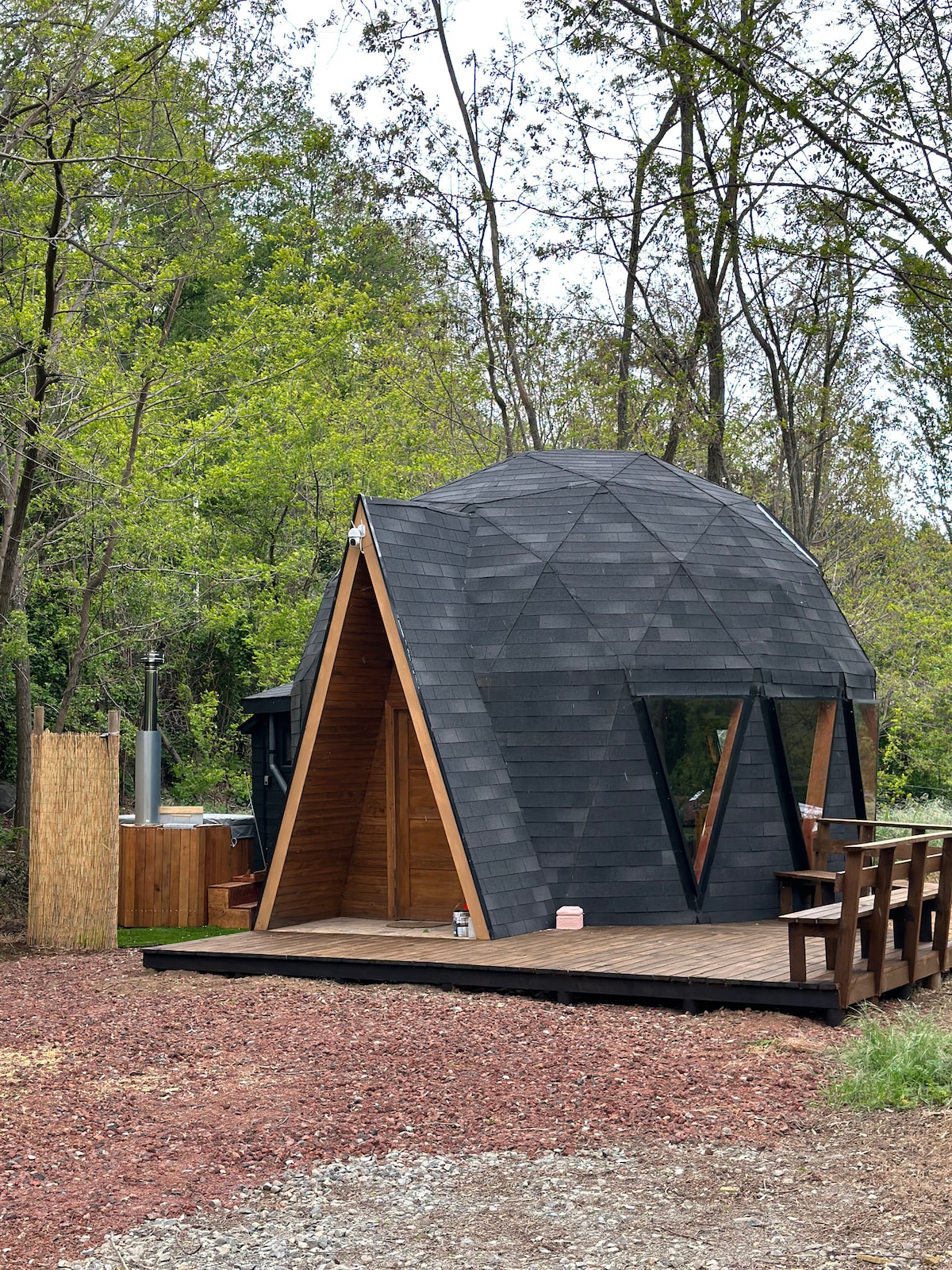 Любители гор, приглашаем вас посетить наши красивые и уютные купола, которые находятся в лесу и на природе. Наши домики расположены на 38-м километре трассы N55 в направлении Термальных источников Чильяна, на въезде в Камино-интерьор-Лос-Пеллинес, 1-й километр. Мы окружены красивым лесом и копиуэ, которые украшают пейзаж, где можно отдохнуть, расслабиться и отключиться, в сопровождении звуков леса, птиц и реки Чильян.