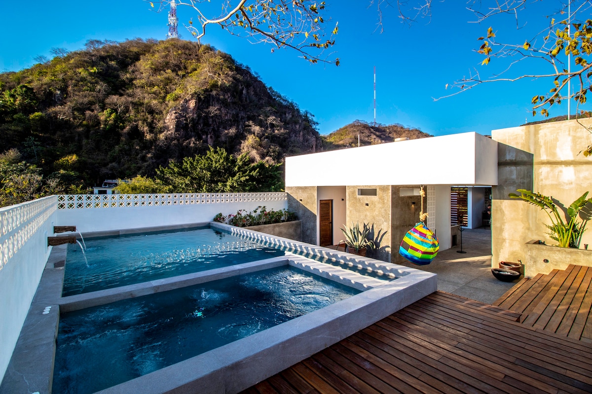 Cuale Unit #304 находится на 3 этаже здания Cuale Condo, в котором в общей сложности находится 13 арендуемых квартир. К услугам гостей просторная 1 спальня и 1 ванная комната, а также стильный мексиканский современный интерьер. На ОБЩЕЙ КРЫШЕ есть бассейн, джакузи, душ на открытом воздухе, ванная комната, лаундж с гамаком, лаундж с камином, открытый театр, костровая яма и полностью оборудованная кухня для барбекю. Это здание расположено в колониальном районе Старого города Эмилиано Сапата и находится в нескольких минутах ходьбы от пляжа и всех развлечений старого города.