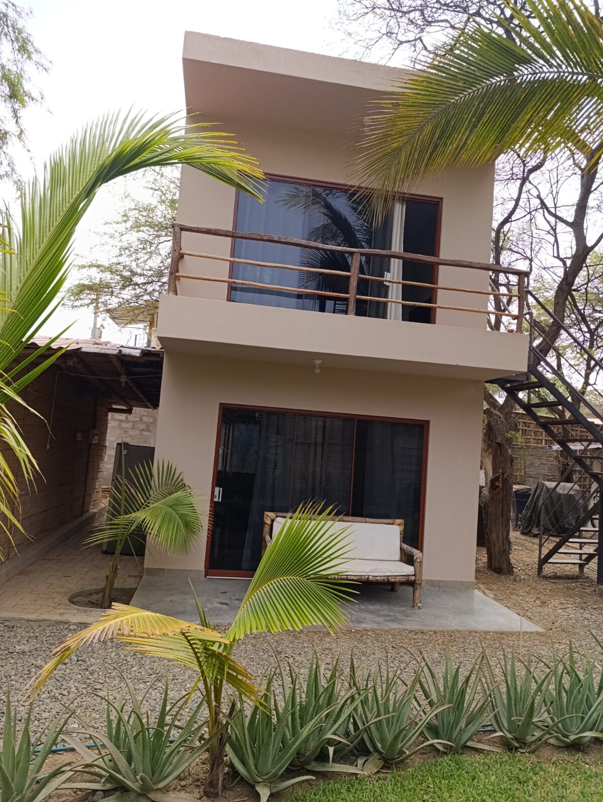 Мы - новый дом!! расположен во втором ряду в Las zona de Las Pocitas, Mancora в соответствии с концепцией роскоши босиком. В доме есть спальня с двуспальной кроватью размера King size на первом этаже и лофт с двумя с половиной квадратными кроватями, ванная комната с душем на открытом воздухе, кухня, бассейн, терраса, костровище и гамак. У нас есть частный выход на пляж в 300 метрах. Мы дружелюбны к домашним животным, и на территории также живет котенок по имени Тигрита.