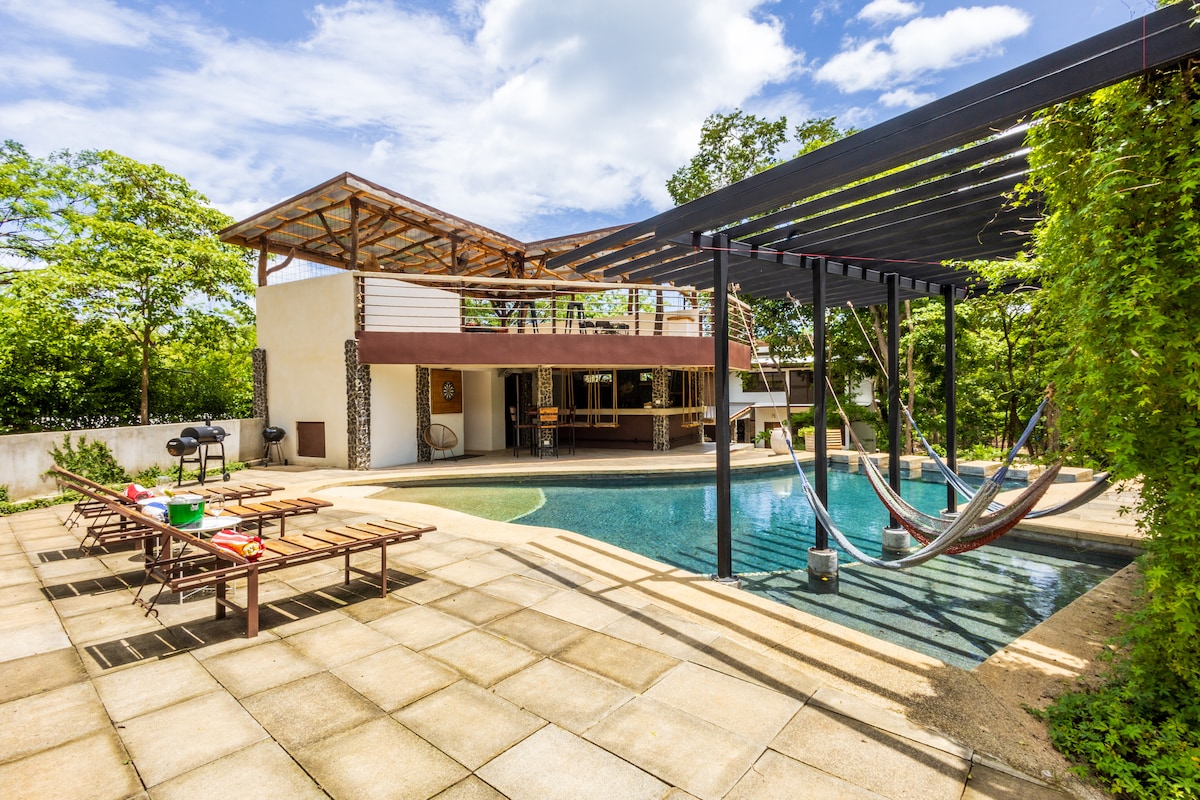 Современный недавно отремонтированный дом расположен в тропическом саду Лос-Мангос. 10 минут от Санта-Круса, 30 минутах от Тамариндо и в 30 минутах от Плайя-Авельянас. К услугам гостей одна двуспальная кровать размера Queen size, один диван-кровать, просторная ванная комната с роскошным душем и полностью оборудованная кухня. К услугам гостей кондиционер, телевизор Smart TV (только в приложениях, без кабельного телевидения) и высокоскоростной Интернет. Доступ к большому бассейну, газовому и угольному грилю, обеденному ранчо, бильярдному столу и душу на открытом воздухе .Бесплатная парковка