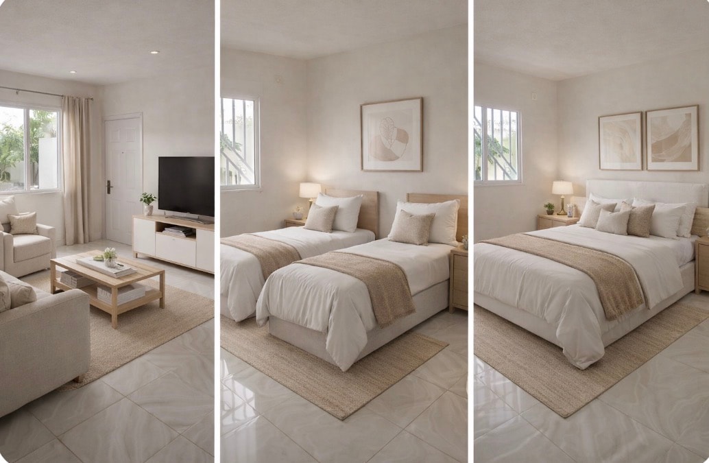 Откройте для себя комфорт и элегантность в этой полностью меблированной квартире с 2 спальнями, идеально подходящей для семей или деловых путешественников. В квартире есть просторные жилые помещения, две спальни с ванными комнатами, современная кухня и стильная гостиная, предназначенная как для отдыха, так и для работы. Она расположена в безопасном закрытом комплексе с бассейном, где созданы благоприятные условия для детей и взрослых. ✨ Для семей • Безопасно • Современно и просторно