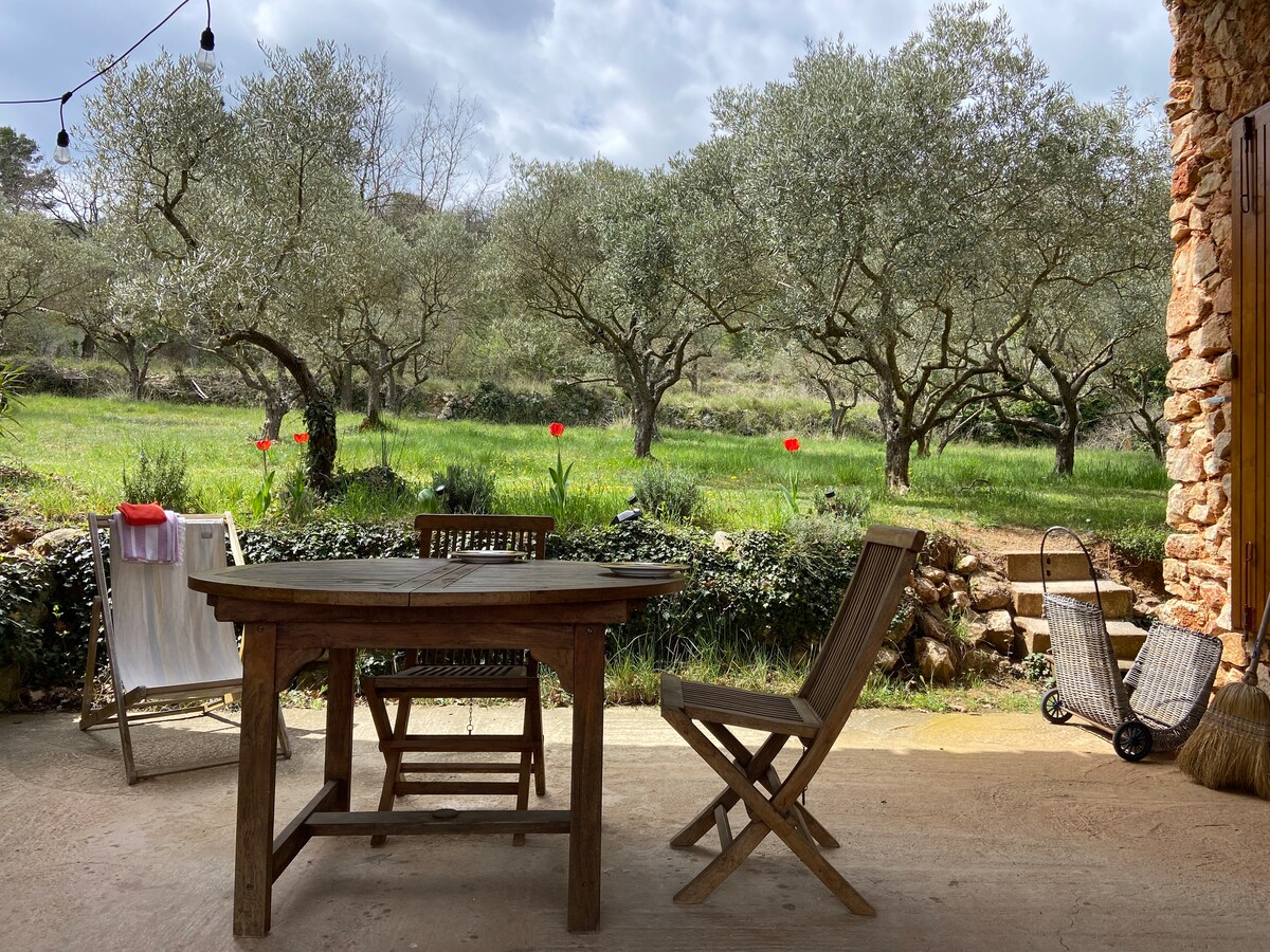 Cabanon provençal dans une oliveraie