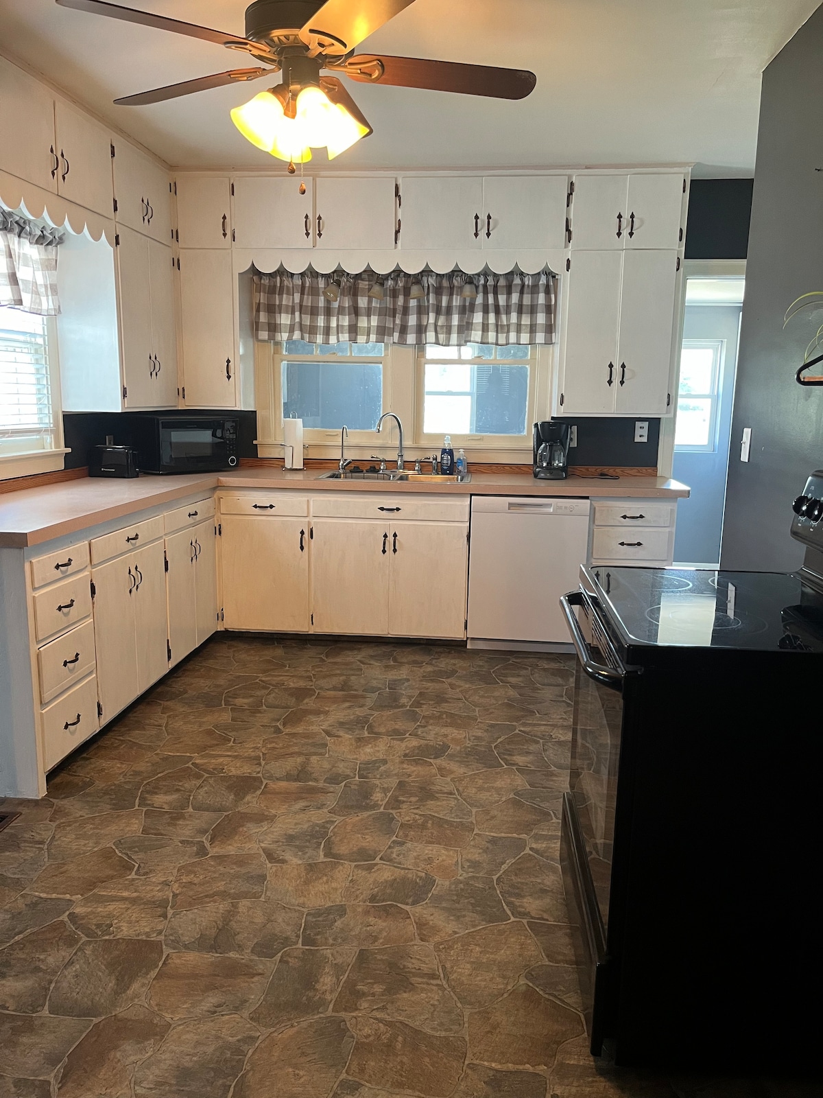 Это отдельная 3 спальни, диван-кровать, 1 ванная комната, просторный двор и отдельная огороженная территория для ваших пушистых младенцев. Ванная комната расположена между двумя средними спальнями (в стиле Jack-n-Jill). Это старый дом далеко не идеальный, поэтому в нем есть некоторые причуды и улучшения, но у него есть все необходимое. Парк напротив очень удобен для детей, чтобы сжечь немного энергии.