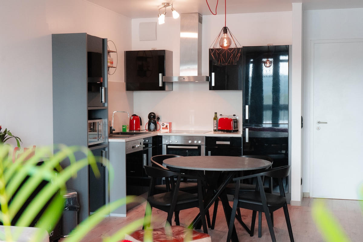 Discover our stylish and modern 1-bedroom apartment located in the heart of Belval! With an industrial chic design, this apartment is perfect for travelers seeking a unique and comfortable stay in the area. Enjoy the spacious and open living area, cozy bedroom with ample storage space, and sleek bathroom with a walk-in shower. Steps away from numerous restaurants, cafes, and shops, and just a short walk from the train station, this apartment is the perfect place to call home during your stay.