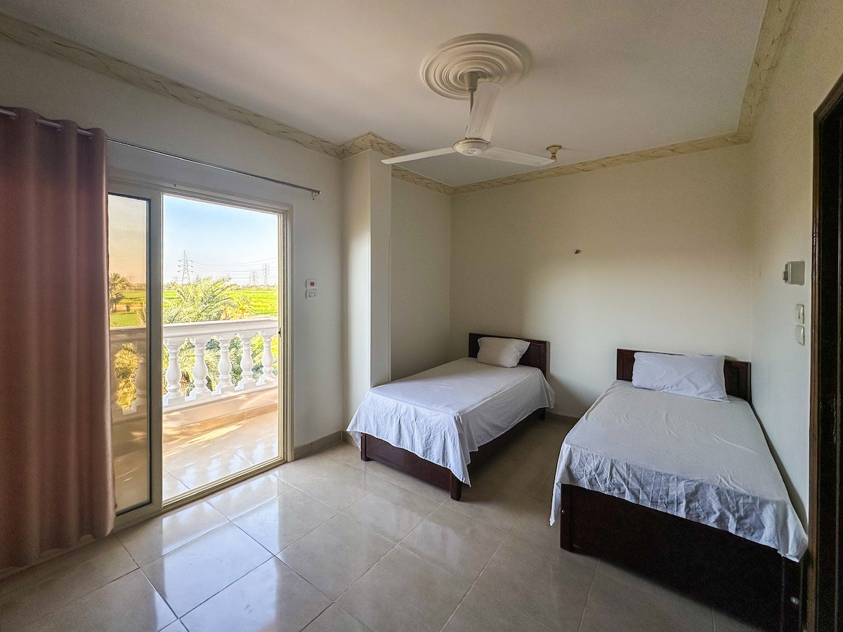 Вилла al diwan : Эта замечательная вилла расположена прямо на западном берегу Нила и имеет собственный бассейн и террасу на крыше с видом на Нил, номера с балконами с видом на Нил, полную кухню и столовую, много уютных гостиных зон, а также услуги по уборке. На вилле могут разместиться односпальные кровати, пары (кровати размера Queen size) и группы до 10 человек . Он расположен на Западном берегу Нила примерно в миле от центра Западного Луксора недалеко от тихой деревни Аль-Акалета.