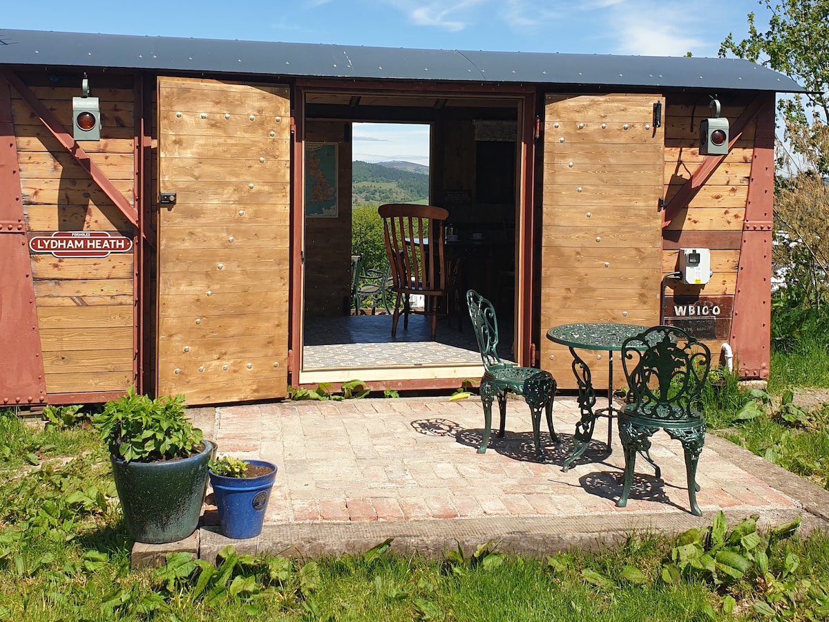 ЛУЧШЕЕ ЖИЛЬЕ В ЭТОМ РАЙОНЕ. Мы создали уникальный, частный автономный домик для отдыха размером 4 х 5 м, расположенный в Шропширских холмах у южных ворот Лонг-Минд. Редкость для домиков и неслыханно для пастушьих фургонов (меньше) — ОБОРУДОВАННАЯ МИНИ-КУХНЯ/гостиная, спальная зона, собственная ванная комната и зарезервированная парковка. Катание на горных велосипедах мирового класса и потрясающие прогулки прямо у нашего порога! Вежливое уведомление: рядом расположена молочная ферма и трасса A49, что может повлиять на людей с чутким сном.