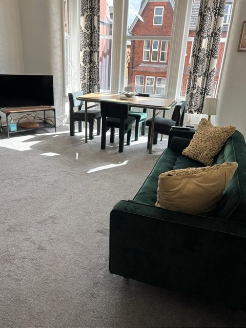 It's 3 miles to Blackpool town centre with a great bus service and shops a two minute walk away. I live downstairs and guests occupy the first floor, set up as an apartment with their own access. There are 2 bedrooms that sleep 3 guests. (one single room with single bed; one double room with a double bed) There is a lounge with TV, dining table and chairs and a small kitchenette. The flat is dog friendly with a large gated front garden.