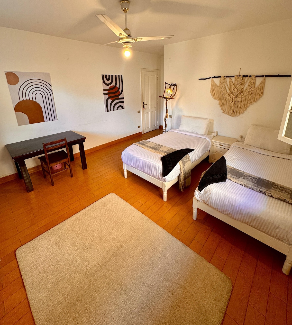 Welcome to a cozy artistic haven.This space is a peaceful escape, thoughtfully decorated with a collection of little artisan pieces and unique finds from different oases and areas of Egypt. It's designed for those who appreciate a simple, calm space. Experience the vibrant pulse of Degla Maadi in this earth-friendly space, you'll be just steps away from a world of delights: indulge in aromatic coffee at nearby cafes, bakeries, book stores, spa and restaurants. 25 mins away from Cairo’s downtown.