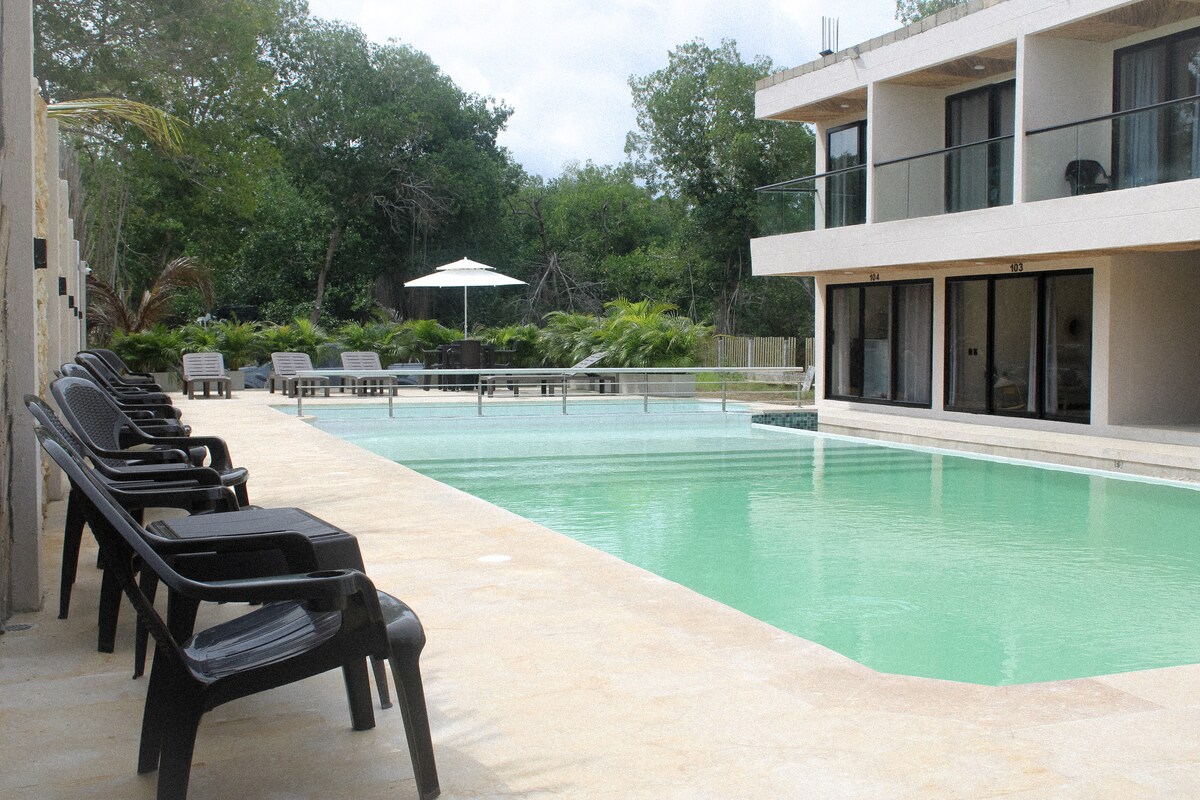 Это современное жилье предлагает вам прекрасные детали, создает незабываемые воспоминания в этих совершенно новых апартаментах, расположенных в Ковеньясе. В каждой квартире есть кондиционер, кухня, парковка, а прямо через дорогу находится общественный пляж. В 400 метрах у нас есть частный пляж и ресторан, где можно провести отличный день на пляже. В кондоминиуме есть бассейн, где можно расслабиться. Мы находимся примерно в 5 минутах от супермаркетов, кассы и всего в 20 минутах от аэропорта Толу.
