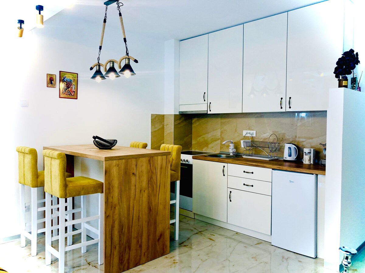 Насладитесь стильным отдыхом в этом месте, расположенном в центре города. Просторная студия с бесплатной парковкой. Он расположен недалеко от рынков свежих продуктов, аптеки, обменного пункта, ряда кафе вдоль берега реки Колубара, пекарни, зоомагазина, одного из лучших сумок в городе и в 5 минутах ходьбы от знаменитого паба «Голос», расположенного в Тешньяре, старейшей улице в городе Валево XIX века и является сербской киноулком. Объявлен культурным наследием Сербии.
