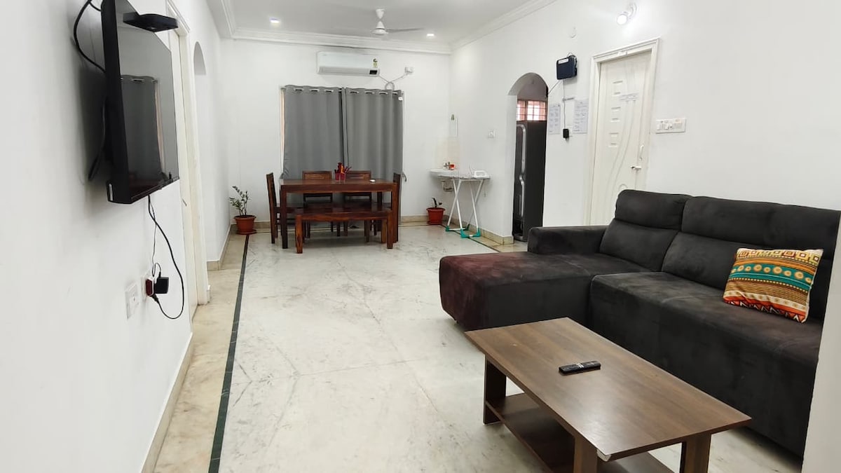 Добро пожаловать в Cityscape, современные апартаменты с 2 спальнями и кухней в тихом, зеленом и очень безопасном районе. Идеально подходит для семей, пар и одиночных путешественников. Жилье находится в 30–35 минутах от аэропорта, легко добраться на Uber, Ola и близлежащих закусочных. Все основные приложения для доставки еды работают без сбоев, и мы рады поделиться с вами нашими лучшими рекомендациями. Вы находитесь в 20–25 минутах от торгового центра GVK, в 2 минутах от ближайшей больницы, рядом с прекрасным парком для утренних или вечерних прогулок. Самостоятельное прибытие для полного удобства во время вашего пребывания.