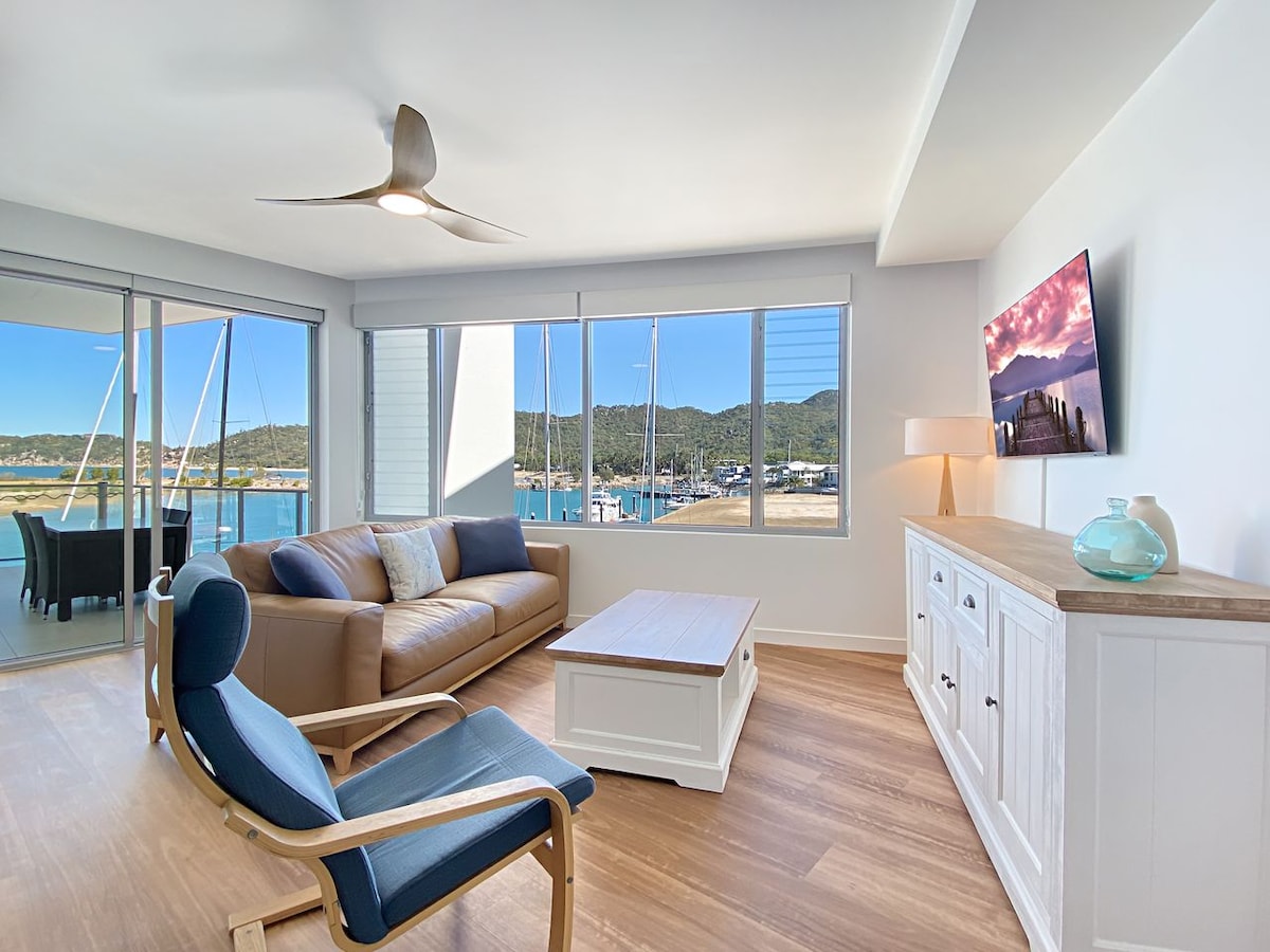Forget your worries in this spacious and serene space, with absolutely stunning views of the marina and out to sea, enjoy the sea breeze sipping sparkling wine on your amazing balcony. Enjoy the use of the 5-Star Blue on Blue Resort at Magnetic Island, the resort facilities includes the 2 pools, a lagoon-style pool, and a more relaxed smaller pool. The apartment has been updated with new furniture & fittings, this deluxe 3-bedroom, 2-bathroom apartment sleeps 6 people, 1 King & 2 Queen beds.