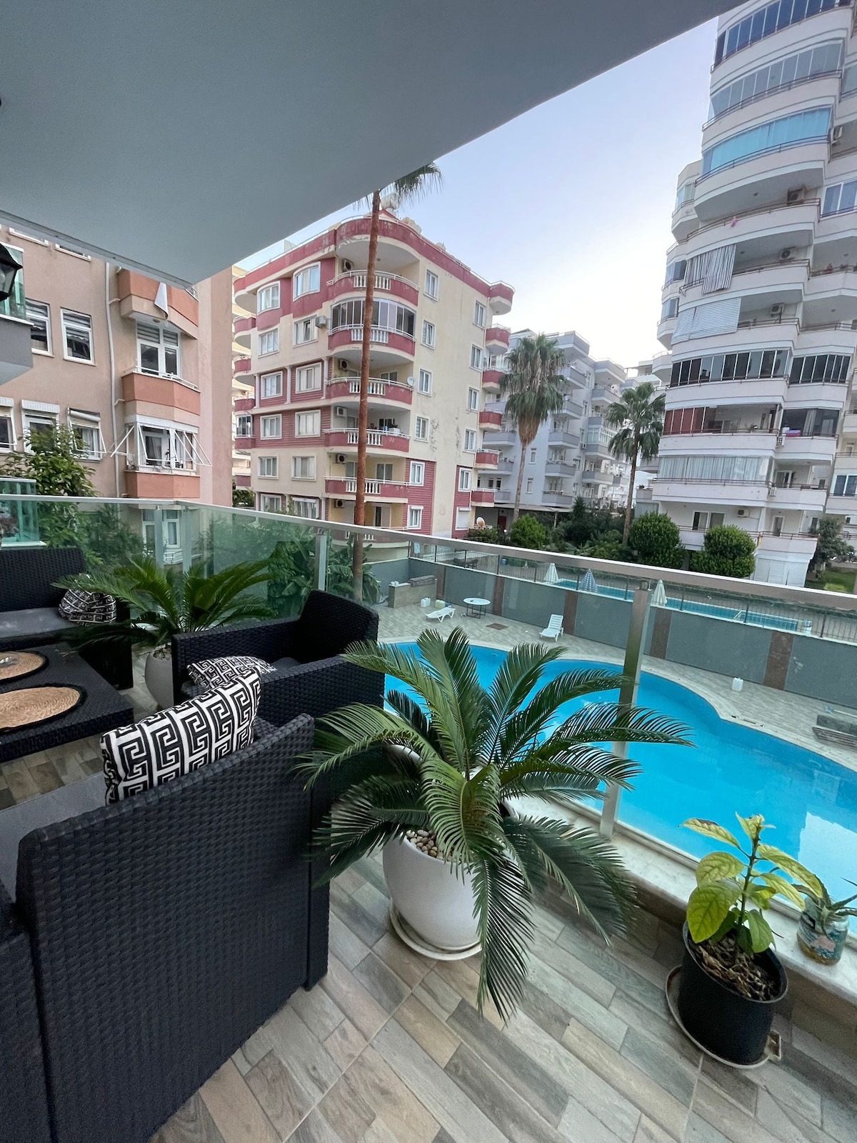 Стильная квартира 1+1 с новой мебелью и техникой, 550 м до моря. Идеально для пары и отдыха на уровне пятизвёздочного отеля. Панорамные окна, просторный балкон. В комплексе: 3 бассейна, аквагорки, хамам, сауна, фитнес-зал, мультикорт, детские зоны, барбекю, охрана 24/7, парковка. Рядом кафе, рестораны, магазины.