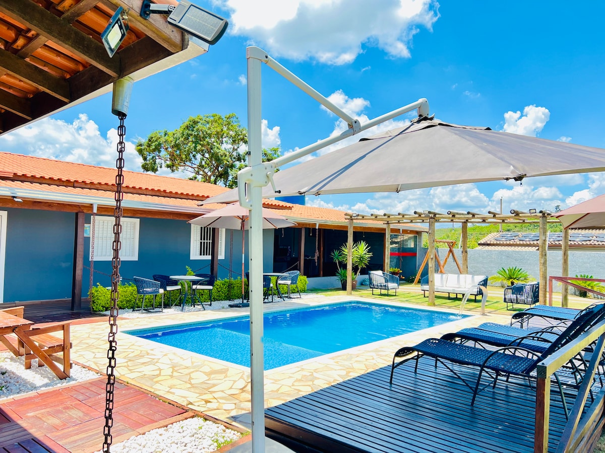 Загородный дом, с полным досугом для взрослых и детей в 50 минутах от Сан-Паулу - столицы. Просторный и комфортабельный дом вместимостью до 15 человек, 6 люксов и балконов. Если вам нужно разместить 17 человек, СВЯЖИТЕСЬ С НАМИ. Просторная, комфортабельная зона для гурманов с холодильником, пивом, барбекю и дровяной печью для пиццы. Идеально подходит для отдыха с семьей и друзьями летом, наслаждаясь бассейном или зимой, наслаждаясь каминами.
