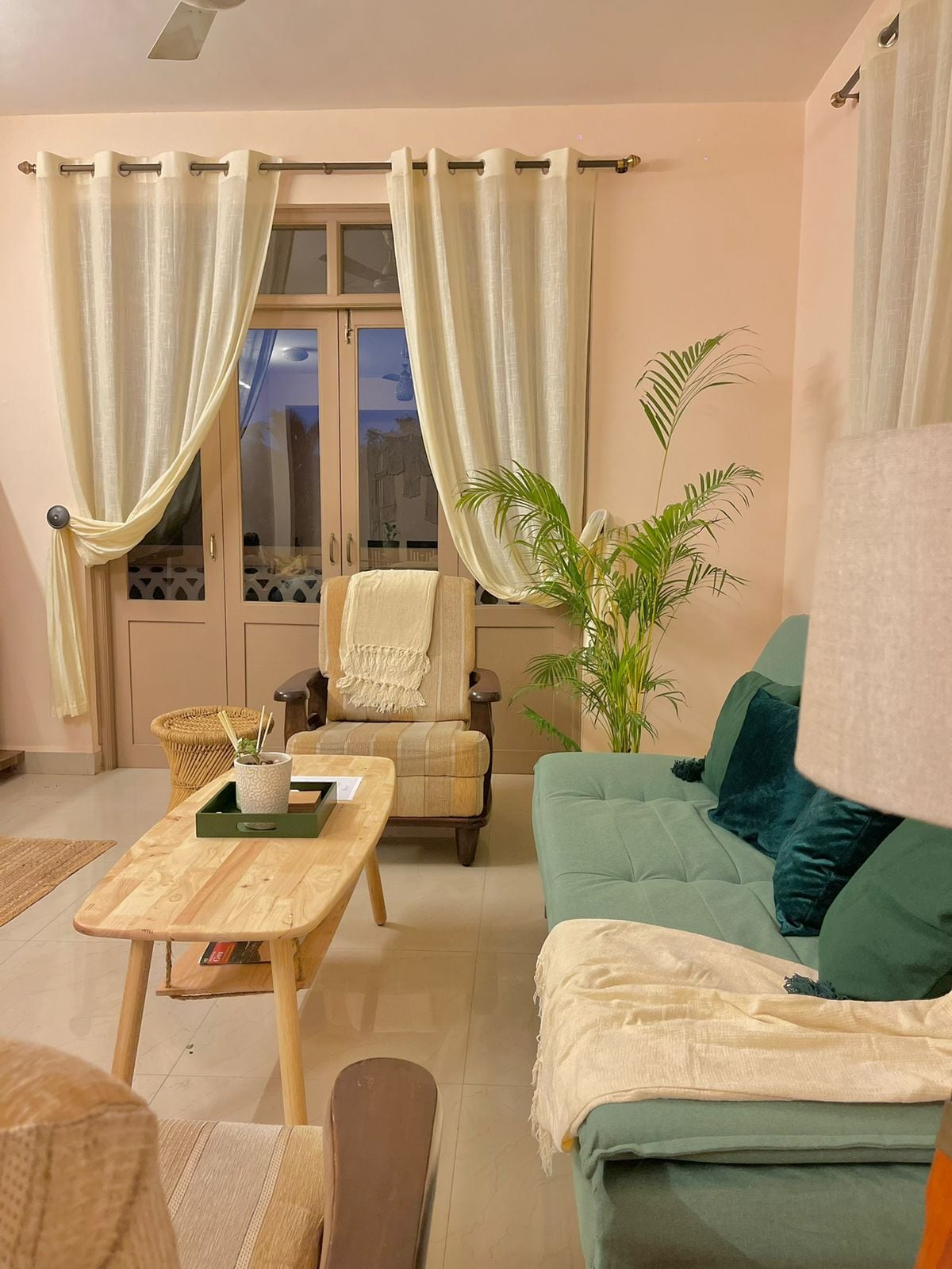 Unwind at our lovingly designed studio apartment with a mezzanine. Our home with high ceiling, floating staircase, hanging plants is designed for a charming feel. Enjoy your coffee with a beautiful view of sunrise over the mountain. The house is located in a residential society, guarded by security 24*7 so you feel safe at our home. We provide our guests with everything from linen, to toileteries, shaving kits, towel slippers, snacks for midnight cravings, and alot more.