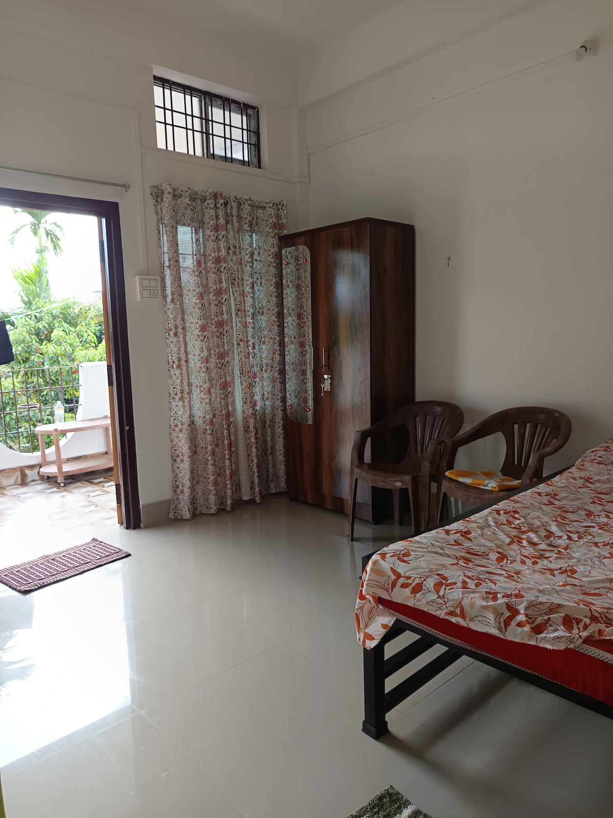 Полная квартира со всеми необходимыми удобствами и парковкой. 1,5 км/1 миля от центра города. Легкое общение в течение дня. 1 двуспальная кровать размера Queen size, 1 двуспальная кровать, кухня и гостиная. Неженатая пара дружелюбна с действительным удостоверением личности государственного образца. Услуги за дополнительную плату: 1) Трансфер автомобиля и высадка. 2) Доступ к занятиям йогой в студии Earth Yoga. 3) Костер. 4) За более чем 2 человек взимается дополнительная плата. 5) Если ваш питомец делает жилье грязным, взимается дополнительная плата за уборку в размере400 рупий. Вы сразу почувствуете себя как ДОМА.