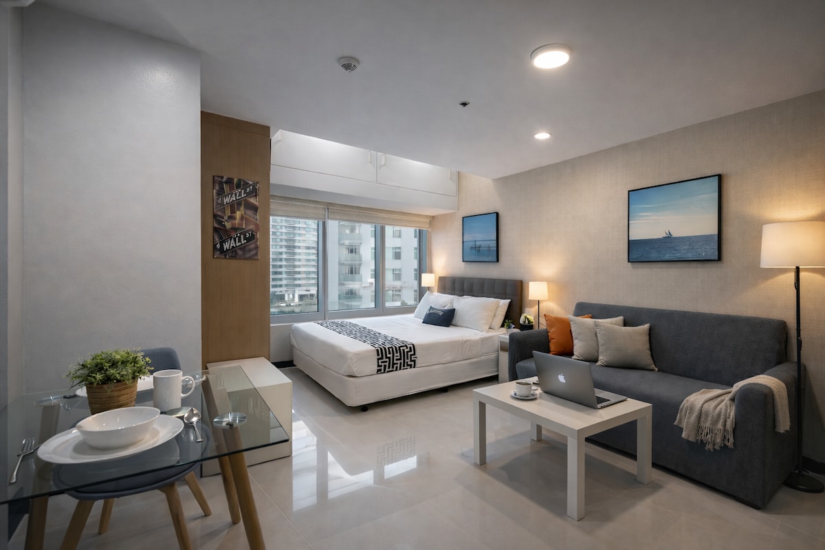 MABUHAY! Если вы в деловой поездке, навещаете семью или путешествуете по Азии, не ищите больше. То, что когда-то было квартирой с одной спальней, теперь превратилось в просторную большую студию (сорок восемь квадратных метров!). Расположенный в одном из самых высоких жилых зданий на Филиппинах, он может быть вашим домом вдали от дома. Если выбранные даты забронированы, вы также можете посмотреть другие наши управляемые студии в моем профиле!
