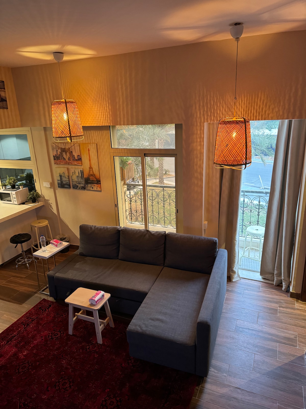Роскошная квартира с современным дизайном, с отличным расположением рядом с аэропортом, торговым центром Mall of Arabia и улицей King's Road. Оно доступно в частном месте и с умным доступом для большего комфорта и уединения. Вас ждет элитное проживание, и нам приятно принимать вас, уважаемый гость