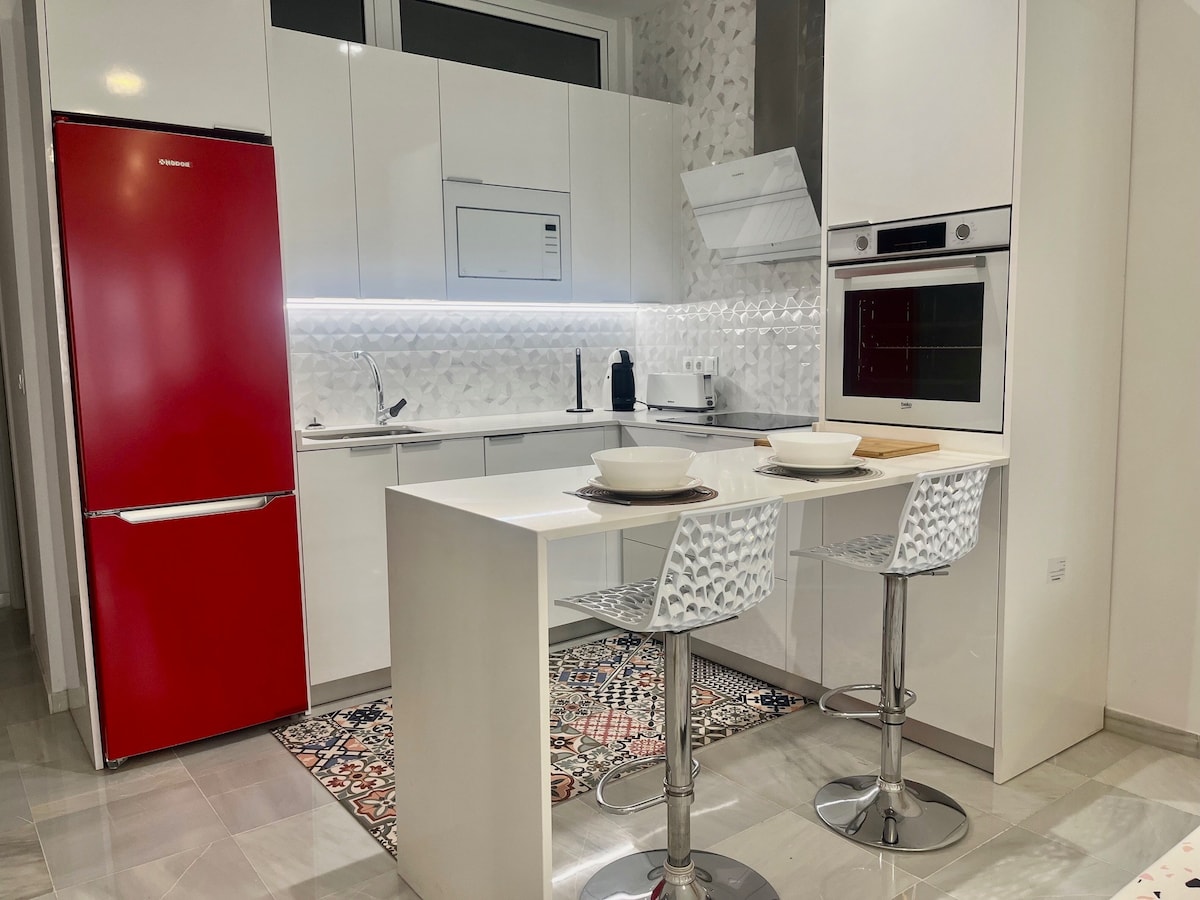 Наша квартира отремонтирована и предназначена для пар, соло-путешественников и небольших групп, которые ищут качественное жилье в Малаге. Каждая деталь нашего дома тщательно продумана, чтобы обеспечить нашим гостям уникальный опыт. Оснащена кондиционером и высокоскоростным Wi-Fi. 7 минут ходьбы до Paseo Marítimo Antonio Banderas, расположенного в районе магазинов, баров, ресторанов и пляжных баров. Наслаждайтесь Впечатлением.