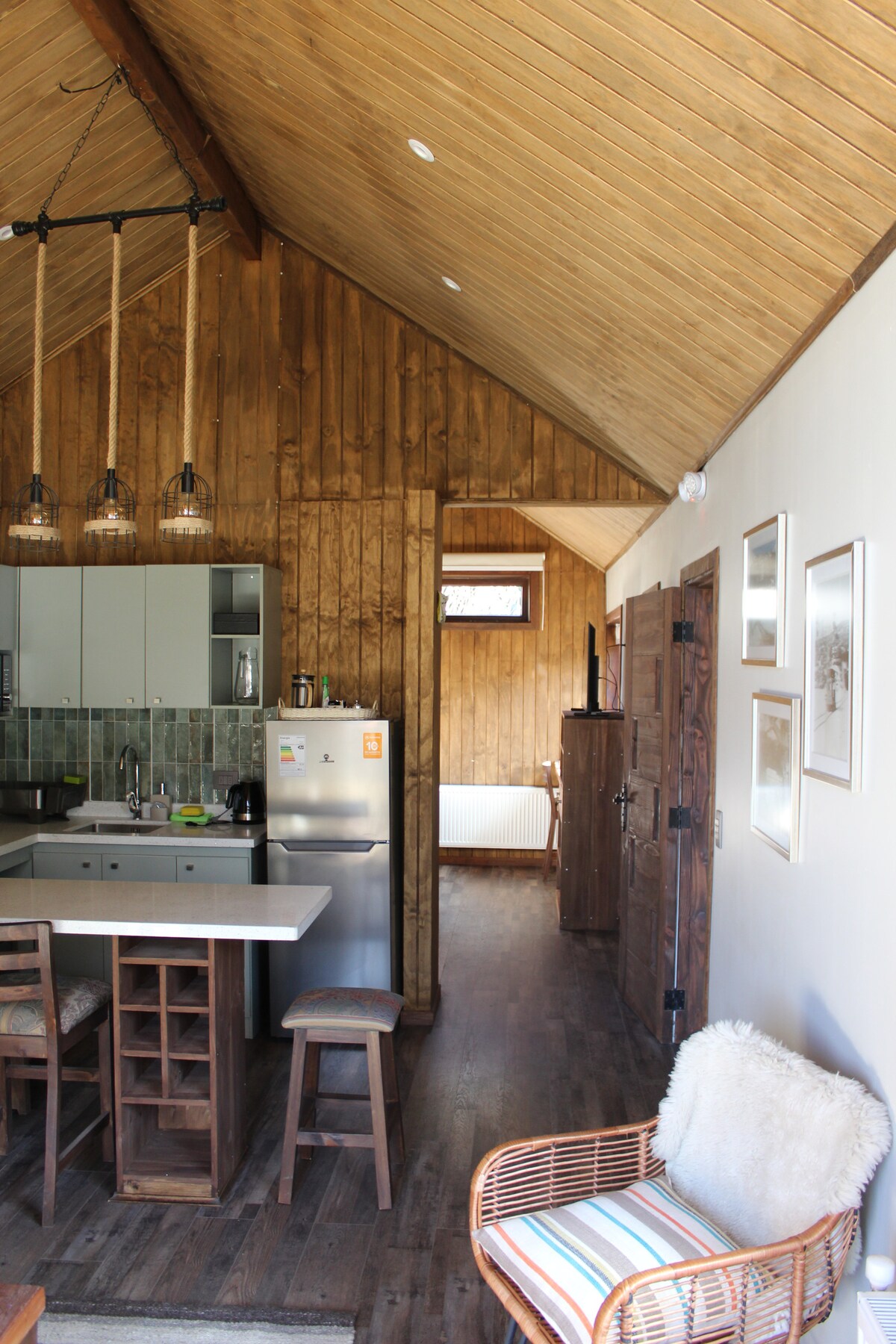 Просторный, комфортабельный и с прекрасным видом на вулкан Лонкимай. Refugio расположен на участке площадью 5000 м2 менее чем в 5 минутах от деревни. Рядом с национальными парками и многими видами активного отдыха, такими как: трекинг, кьяк, рафтинг, катание на лыжах, катание на лошадях, восхождение на вулкан и многое другое. Это также идеальное место для расслабления и подзарядки. Вы сможете насладиться нашей ванной и нашей большой террасой с костровищем, чтобы поделиться незабываемыми моментами со своими близкими.