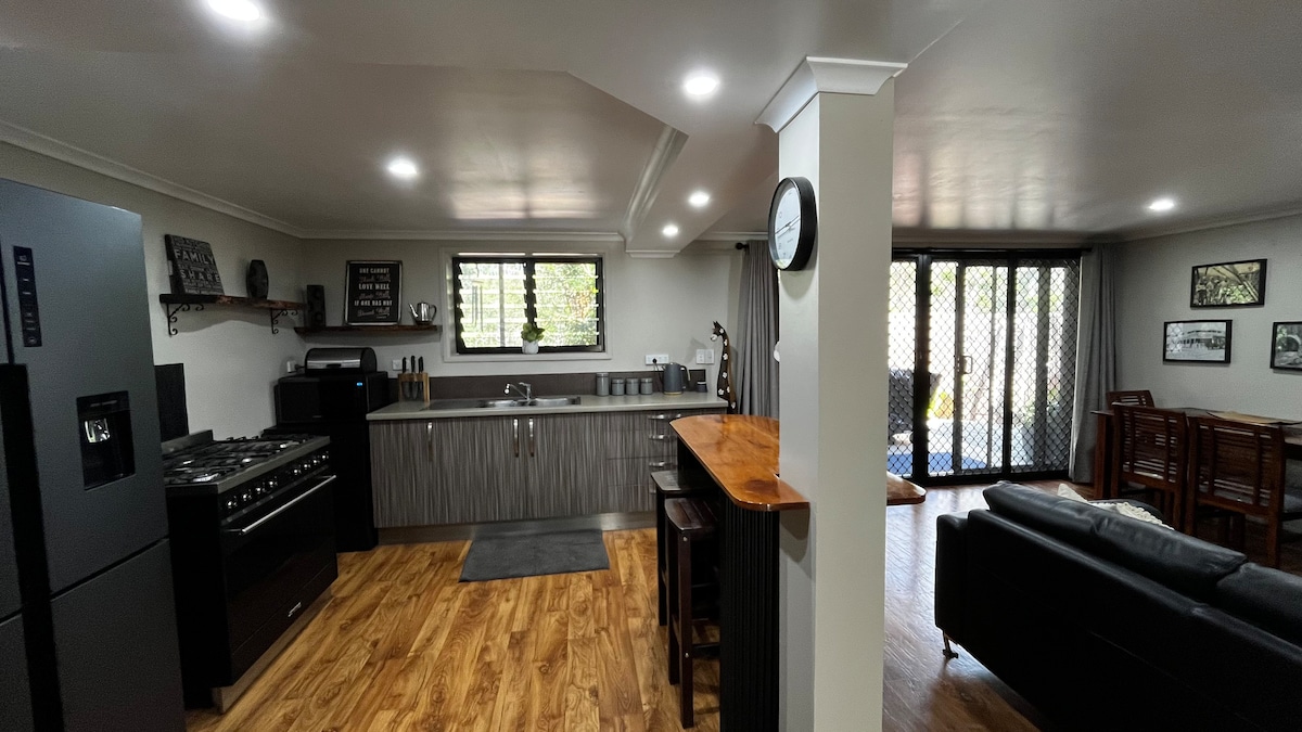 Расслабьтесь в этом уникальном и спокойном отпуске, который обеспечивает все необходимые удобства во время знакомства с Столовыми землями. Жилье предназначено для обеспечения комфортного пребывания. Уютная гостиная с мини-кухней, частным патио и парковкой под прикрытием. В сарае есть терраса с видом на захватывающие дух пейзажи и реку. Открытый костер и барбекю - идеальное место для отдыха с утюгом и случайным посещением Tree Kangaroo. Жилье имеет прямой доступ к реке для ленивого арво.