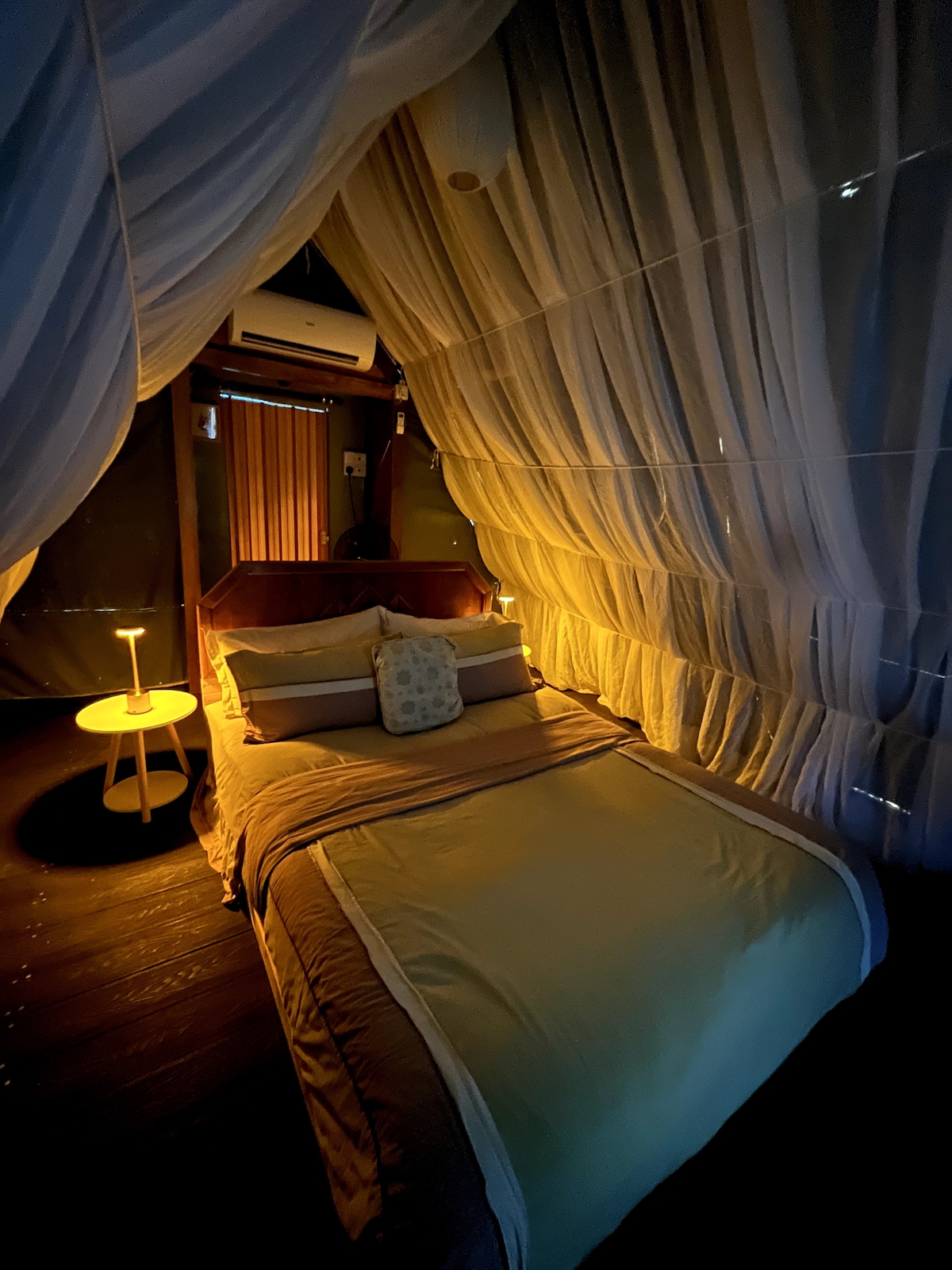 Насладитесь прекрасным отдыхом в романтической приморской палатке в окружении природы. Наслаждайтесь океанским бризом, уютным кондиционером и спокойными ночами под звездами — идеально подходит для пар или семей, ищущих уникальный тропический отдых в этом романтическом месте на природе.