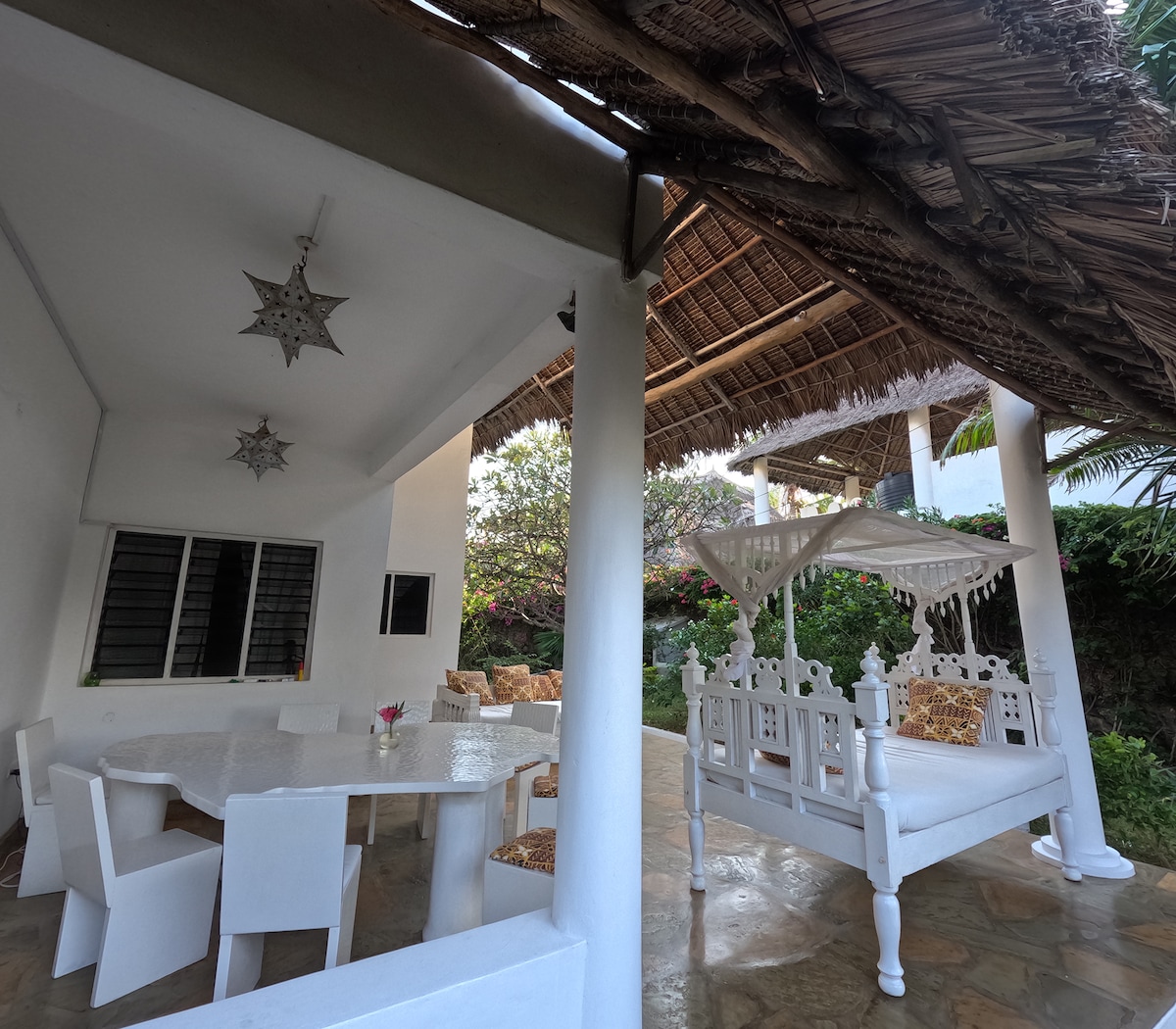 Вилла находится на курорте недалеко от центра и пляжей, примерно в 5 минутах ходьбы. Недавно построенный, предлагает новую мебель в стиле Swaili. Во всех спальнях есть собственная ванная комната. Комнаты просторные и светлые, а на первом этаже у вас будет полуоткрытый люкс в африканском стиле, бамбуковые стены и личная ванная комната. В саду находится великолепный 30-метровый бассейн. Ежедневная уборка, услуги шеф-повара по запросу. У нас такая же вилла для групп. Wi-Fi включен.