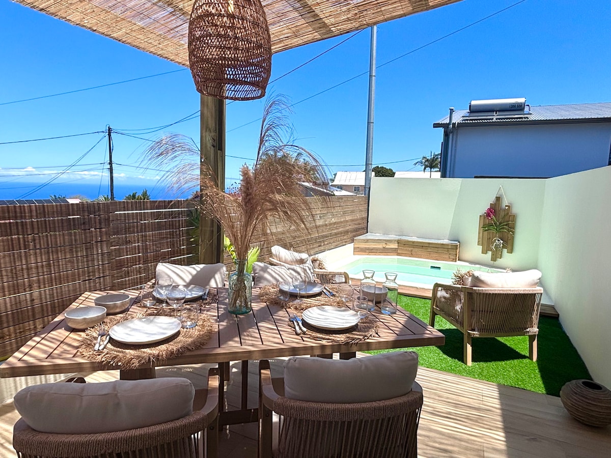 Уютная студия ⭐️⭐️⭐️ в Petite Île: потрясающие виды, бассейн на крыше и пляж в 10 минутах езды!🌊🏖️ Мечтаете о кусочке рая в центре юга острова? Эта полностью оборудованная студия, расположенная на острове Петит, предлагает вам лучшее из обоих миров: спокойствие деревни и близость к югу. Расположена наверху от нашей виллы в задней части тупика с террасой с видом на море. 🌴 Что вам понравится: * Бассейн на крыше. * До пляжа Гранд-Анс 10 минут. * Природа и спокойствие. * Оборудованная студия.