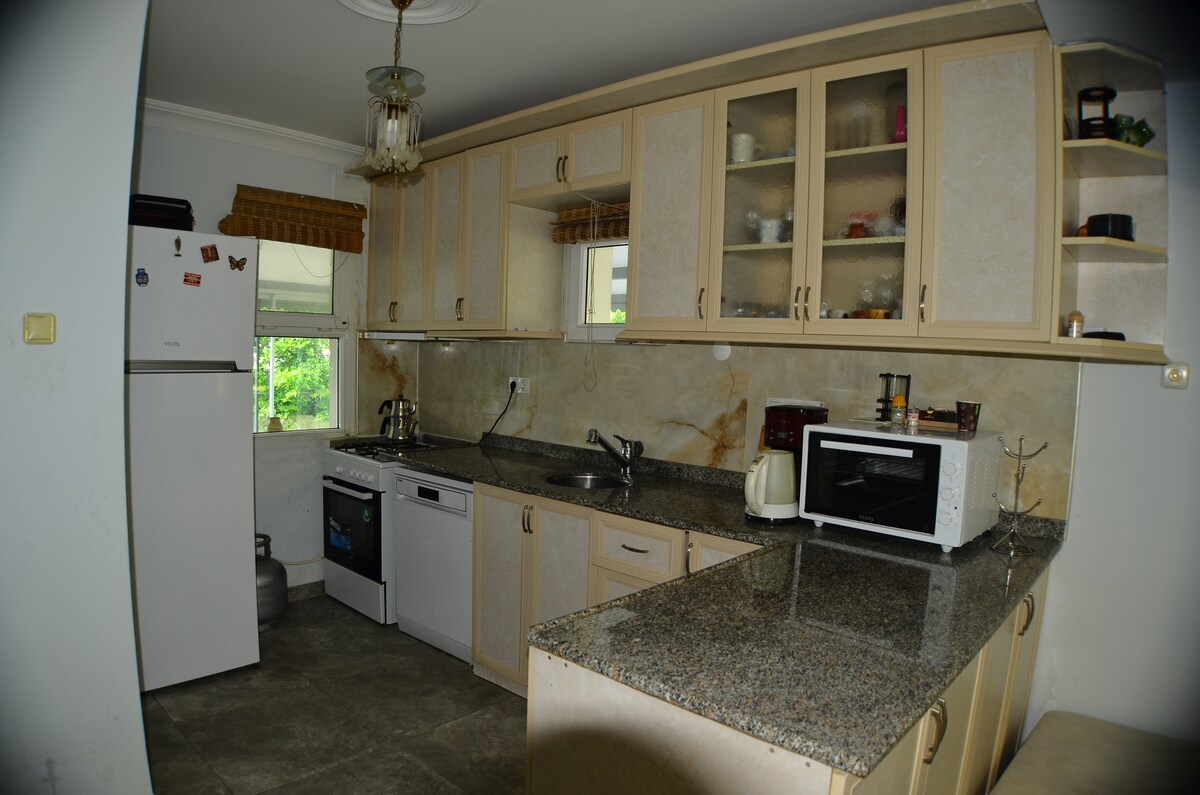 Вилла состоит из 4 спален (в каждой комнате есть ванная комната с туалетом, кондиционером и системой отопления), прачечной, 2 гостиных, 2 кухни и 4 балкона, а также просторный сад с просторной террасой. С каждого этажа открывается вид на море, он находится в первом ряду на охраняемом участке, до него можно дойти за 1 минуту пешком до пляжа со специальным замком. Все пляжи, такие как зонтики, душ, шезлонги, бесплатны. Рядом с виллой есть пешеходные/беговые дорожки, есть места для рафтинга Aspendos, водопад, Ancient Side/Apollo, Beşkonaklar.
