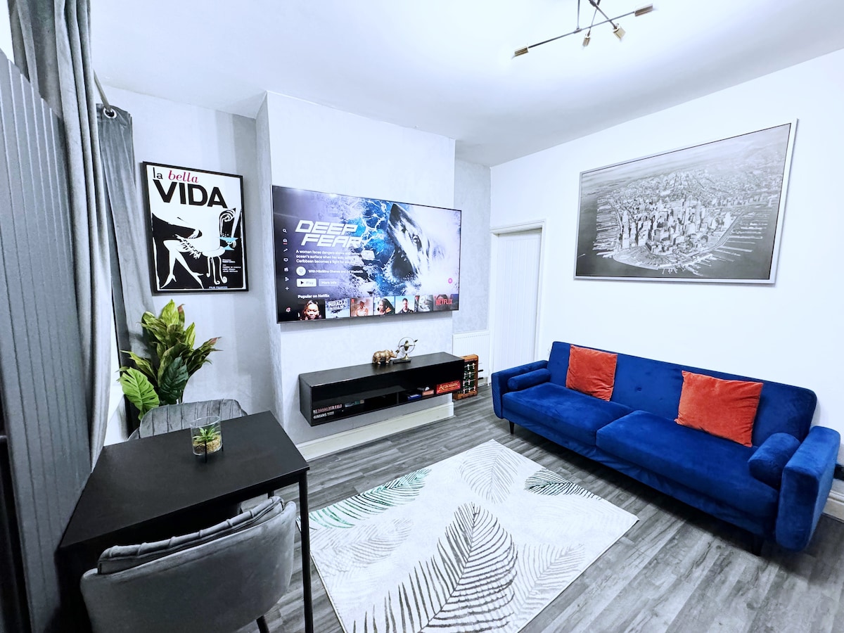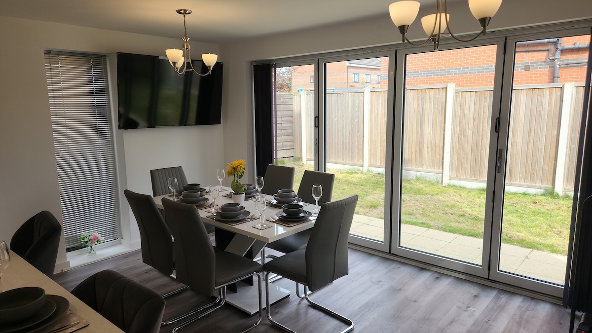 Очень просторный 4-комнатный дом. 🛌 Очень удобные кровати с матрасом из пены с эффектом памяти. Супер King size и двуспальные кровати размера King size. ✅ примерно в 5 минутах от баров и ресторанов в центре города. 🍸 ✅ Бесплатная неограниченная парковка. 🚗 В ✅ 5 минутах от стадиона «Манчестер Юнайтед» ⚽️ В ✅ 5 минутах от Медиа Сити. ✅ 10 минут от Траффорд-Центра. 🛍️ В ✅ каждой спальне есть 55-дюймовый телевизор со smart TV. ✅ Аэрофритюрница 🤩 ✅ Идеально для подрядчиков Забронируйте наш дом сейчас и наслаждайтесь идеальным отдыхом вдали от дома.
