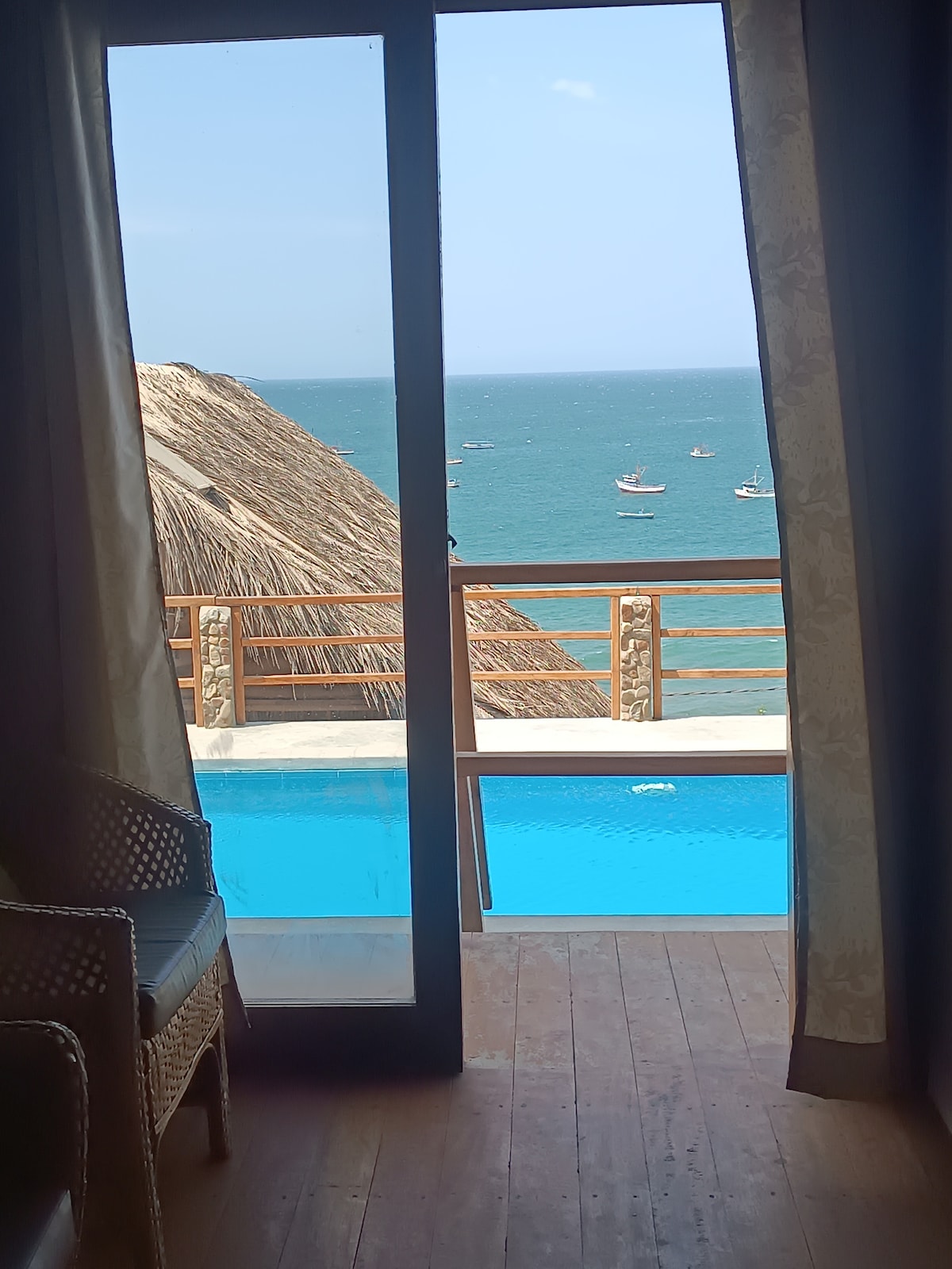 Новое бунгало-люкс с выходом к морю в Пунта-Велерос, север Перу. В бунгало есть кровать «king-size» с видом на бассейн и море, а также вторая кровать с половиной квадратной кроватью, которая была специально спроектирована для работы в качестве удобного дивана-кровати. Полностью оборудованная кухня, гостиная, столовая с видом на море, большая ванная комната с горячим душем на открытом воздухе и терраса с частным бассейном. Прямой доступ на пляж в 400 метрах. Высокоскоростной Интернет во всем бунгало.