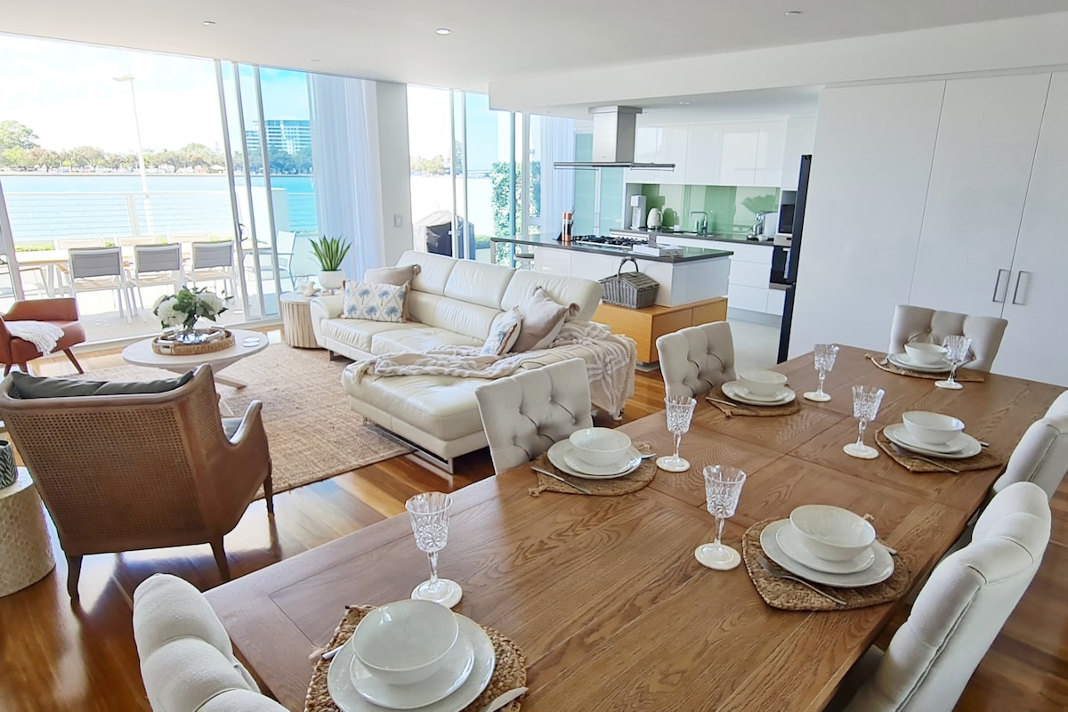 Насладитесь стильным отдыхом в двухэтажной квартире, расположенной в центре города. К услугам гостей общий открытый бассейн, фитнес-зал и спа-салон. В каждой комнате есть телевизор со Smart TV, бесплатным Netflix и Wi-Fi. Из спален и с собственного балкона открывается прекрасный вид на воду и город. Прогуляйтесь по близлежащим кафе, ресторанам и барам, а популярные пляжи находятся всего в нескольких минутах ходьбы. Понаблюдайте за дельфинами, приготовьте барбекю и полюбуйтесь лодками прямо у порога.