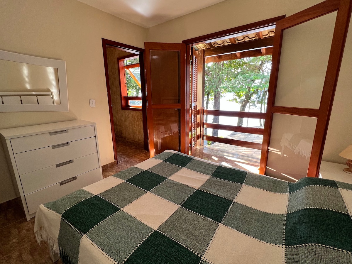 Жилье в сельской местности в шале у подножия горы Морро-Морумби, в 3,5 км от Рибейран-Клару/PR (1,5 км по очень хорошей грунтовой дороге). Деревенское, уютное деревянное шале. Полностью оборудованная кухня, плита, холодильник, микроволновая печь, кондиционер в спальне, камин, сушилка, смарт-телевизором, Wi-Fi, барбекю. Балкон с гамаком, вид на карьер. 🌳 Спальня: 1 двуспальная кровать размера Queen size + 2 односпальные кровати. Внешние пространства, общие с гостями соседнего дома, у нас есть подушки и покрывало. Сбор за питомцев: 50,00 $.