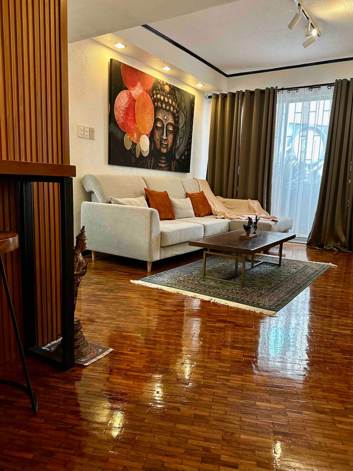 Откройте бесплатное вино и послушайте музыку через ретро-колонки Marshall. Деревянная мебель на заказ сочетается с текстурированными бетонными стенами, плюшевыми персидскими коврами, классическими винтажными предметами и искусственными акцентами 60-х годов. Изысканное слияние промышленных и ретро-функций в конечном итоге придает этому лофту его уникальный, особый характер. Идеально подходит для фотогеничной атмосферы бутик-отеля. Фантастический вариант для деловых поездок и пар с взыскательным вкусом, желающих остановиться в одном из самых премиальных мест Манилы.