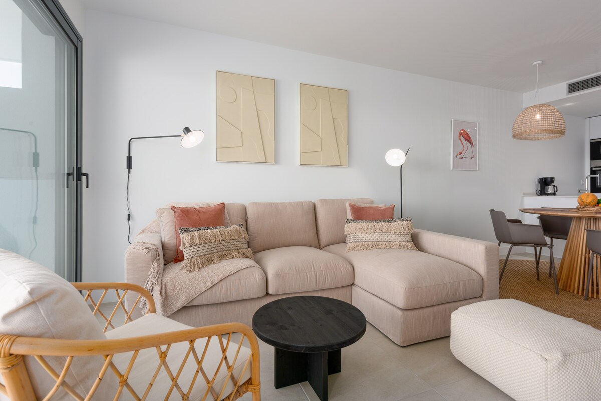 Из этих эксклюзивных дизайнерских апартаментов в стиле Ваби-Саби и современности открывается потрясающий вид на Средиземное море. Здесь есть две спальни, предназначенные для максимального комфорта, полностью оборудованная современная кухня и большая гостиная со столовой, зона отдыха, 65-дюймовый телевизор и рабочая зона. Ваша частная терраса приглашает вас отдохнуть в спокойной обстановке. Всего в нескольких минутах от пляжа, ресторанов и полей для гольфа, он идеально подходит для тех, кто ищет комфорт и безмятежность.