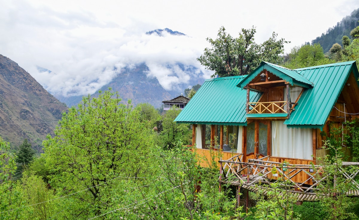 🌲 Escape to Tranquility in Sainj Valley Welcome to our cozy hand-crafted wooden cottage nestled among apple orchards and pine trees in the serene village of Manyashi, Sainj Valley. ⛰ What You'll Love: • Stunning views of snow-capped peaks from your private balcony • Fresh mountain air and peaceful surroundings — ideal for a digital detox or a romantic getaway • Beautiful wooden interiors with large windows and natural light • Wake up to the chirping of birds and fall asleep under a starry sky