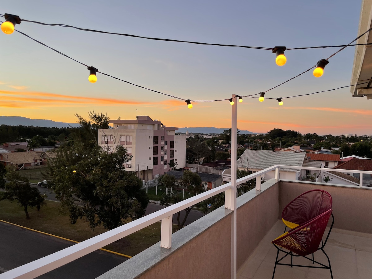 Отличная квартира на первом этаже с большим собственным балконом в Centro de Xangrilá, новыми кроватями с пружинными матрасами Herval. Очень уютно, с особенным экологическим камином. Хорошо укомплектовано, включая специальную печь для жарки. Отличное барбекю. Воздух разделен на две спальни. Здание с большим бассейном и комнатой для вечеринок. Мебель на заказ. Имеется 1 частное парковочное место.