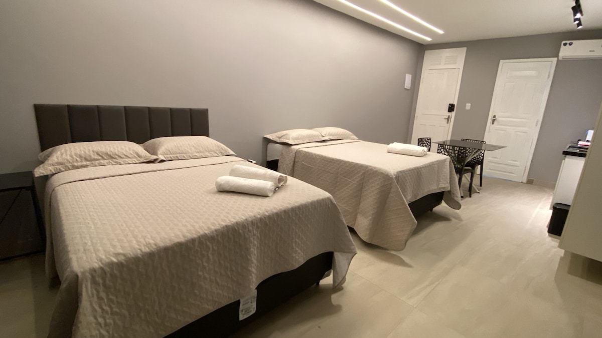 Studio moderno e aconchegante no bairro Jurunas, em excelente localização, a poucos minutos da Praça Batista Campos. O espaço é novo, com design contemporâneo, iluminação em LED embutida, cama confortável, Wi-Fi rápido e ar-condicionado. Fica próximo de supermercado, farmácias, restaurantes e comércio local, garantindo toda a praticidade para sua estadia em Belém. Ideal para quem busca conforto, tranquilidade e fácil acesso ao centro da cidade.