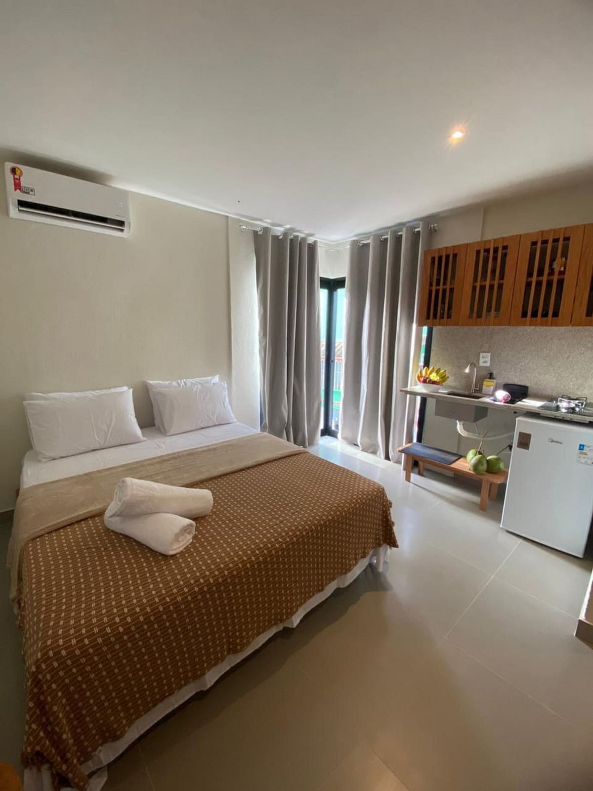 Квартира в пляжном кондоминиуме (кондоминиум Villa do Pescador), частная, просторная и уютная, с СОБСТВЕННОЙ кухней, балконом, гамаком, обеденным столом/домашним офисом на балконе, двуспальной кроватью размера Queen size, кондиционером из чистого хлопка, без открытого сетевого телевидения, только бесплатным Netflix и Wi-Fi. Максимум 3 человека за дополнительную плату. Очень хорошее расположение - близко к местным магазинам.