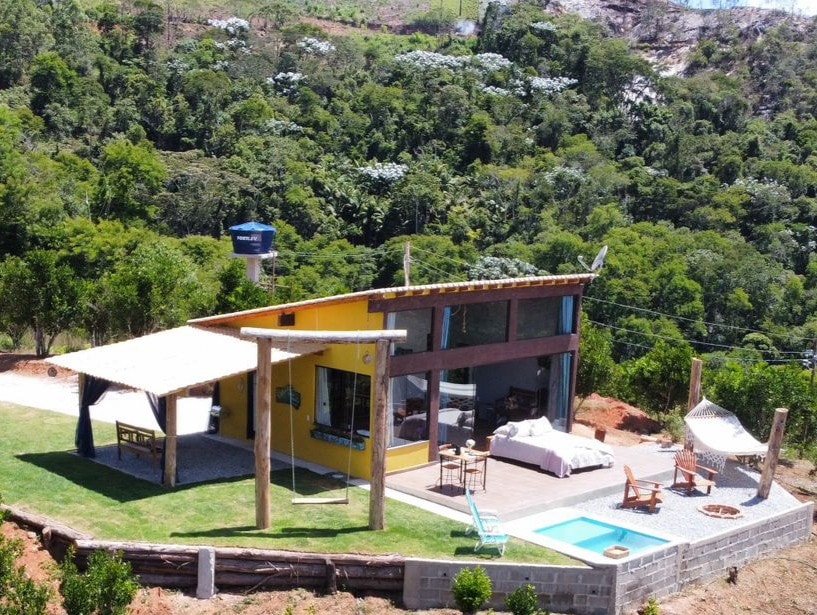 Este lugar único tem um estilo próprio. Nosso chalé luxo cheio de charme, tem um design diferenciado visando proporcionar momentos maravilhosos e de conforto. Com uma vista espetacular para as montanhas e um pôr do sol incrível traz paz e tranquilidade! Aproveite a paisagem encantadora deste lugar romântico em meio à natureza. Lugar agradável para casal, casa aconchegante para dias incríveis nas montanhas capixabas. Próximo ao China Park , chegando em Pedra Azul. Vilarejo, área rural