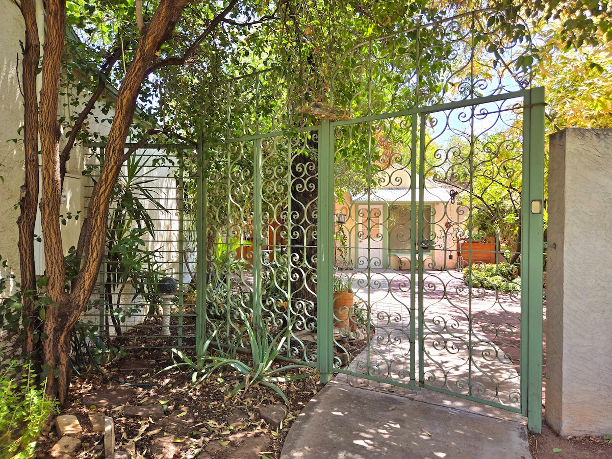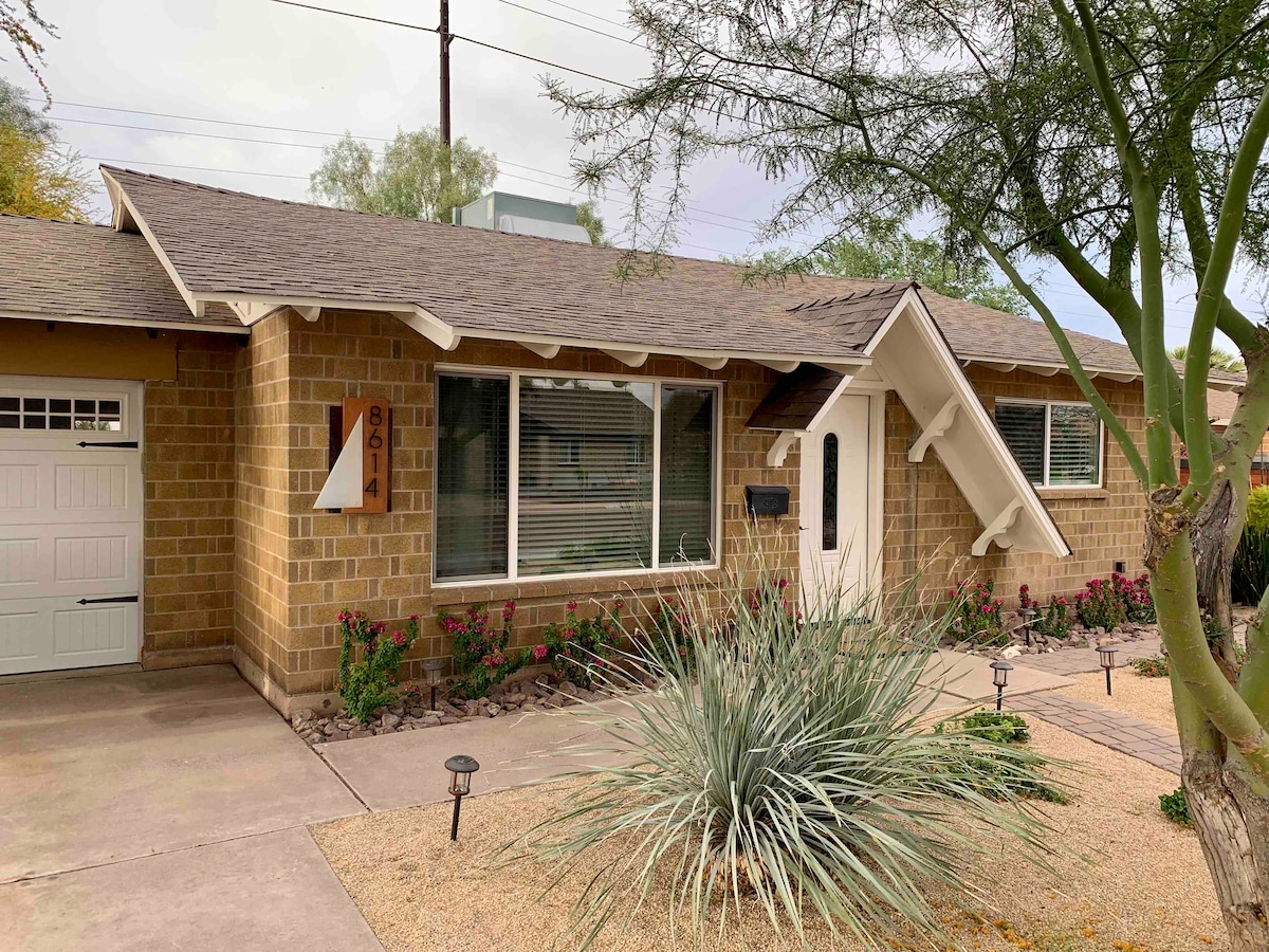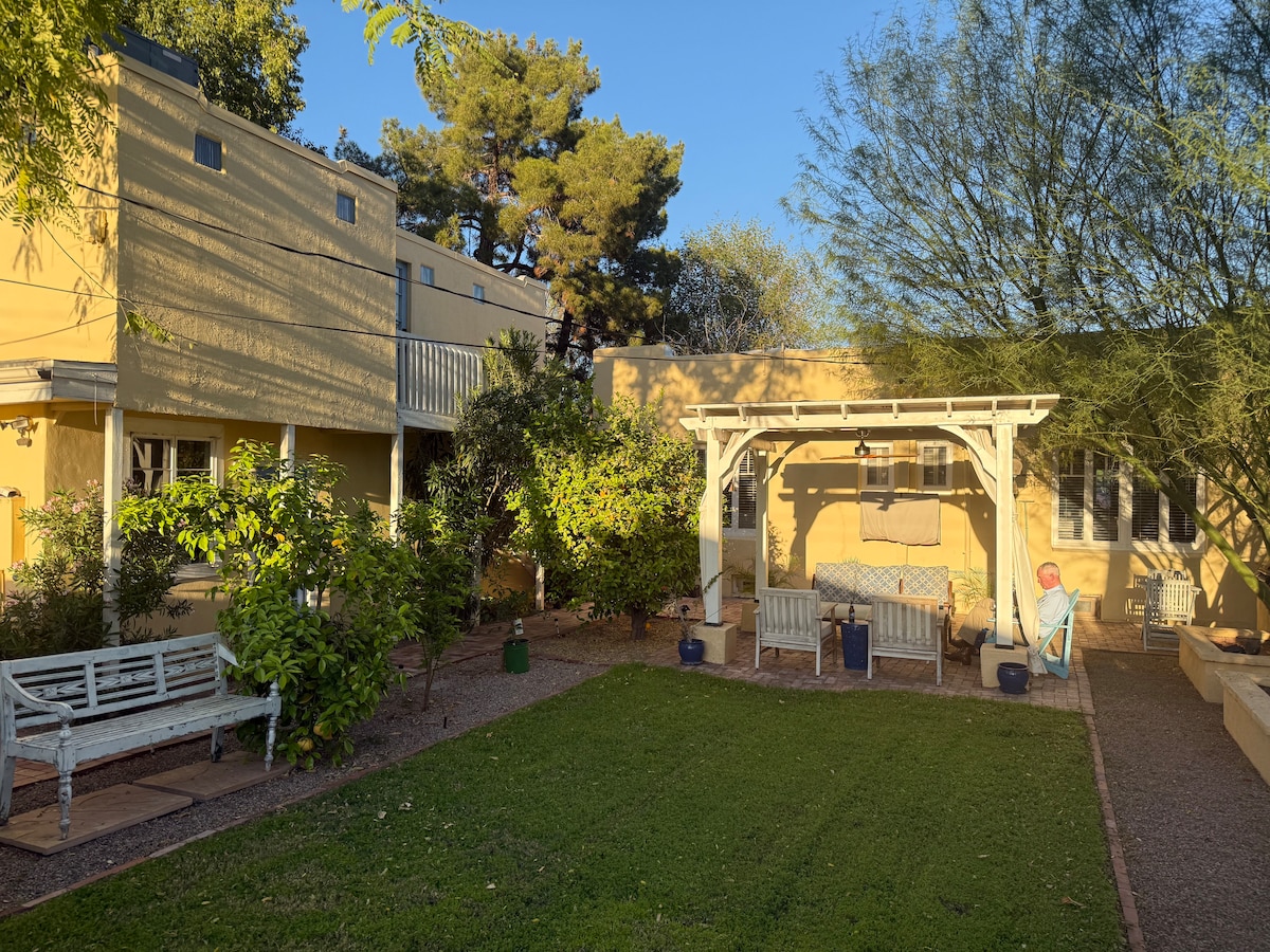 Красивый, светлый, просторный домик середины века Adobe Casita, расположенный с видом на огороженный стеной тропический сад в историческом центре Финикса. 10 минут от аэропорта «Скай-Харбор» и расположен в очень популярном и историческом районе Мелроуз. До 20 ресторанов, баров, кафе можно дойти пешком за 3 квартала. Винные магазины, винтажные магазины, продуктовые магазины и аптека в 2 кварталах ходьбы. Скоттсдейл/центр Финикса в нескольких минутах езды. Меблирована антиквариатом и местными произведениями искусства. Wi-Fi, телевизор, полностью оборудованная кухня, стиральная машина/сушилка включены в стоимость проживания.