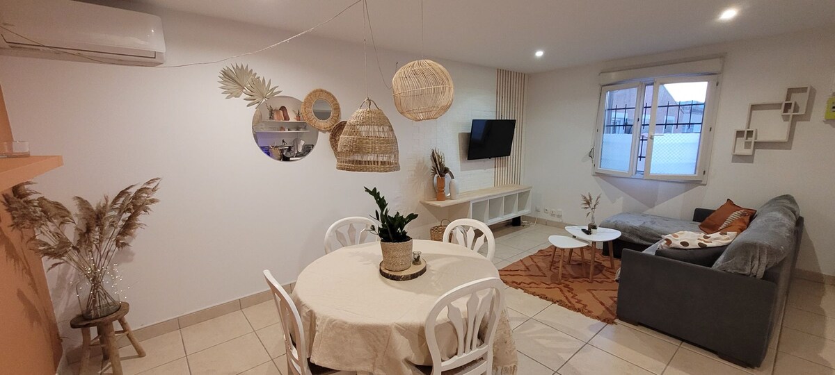 Новая и элегантная квартира в современной и безопасной резиденции, в центре нового района Джолиетт. Метро (3 остановки от Сен-Шарля), трамвай и велосипеды в 5 минутах ходьбы. Быстрый доступ к A7/A55. Старый порт — 7 минут на трамвае. Магазины, рестораны, торговый центр и Европейская больница в 5 минутах ходьбы. Частная парковка, терраса. Скидки за неделю или месяц. Уборка от профессионала.