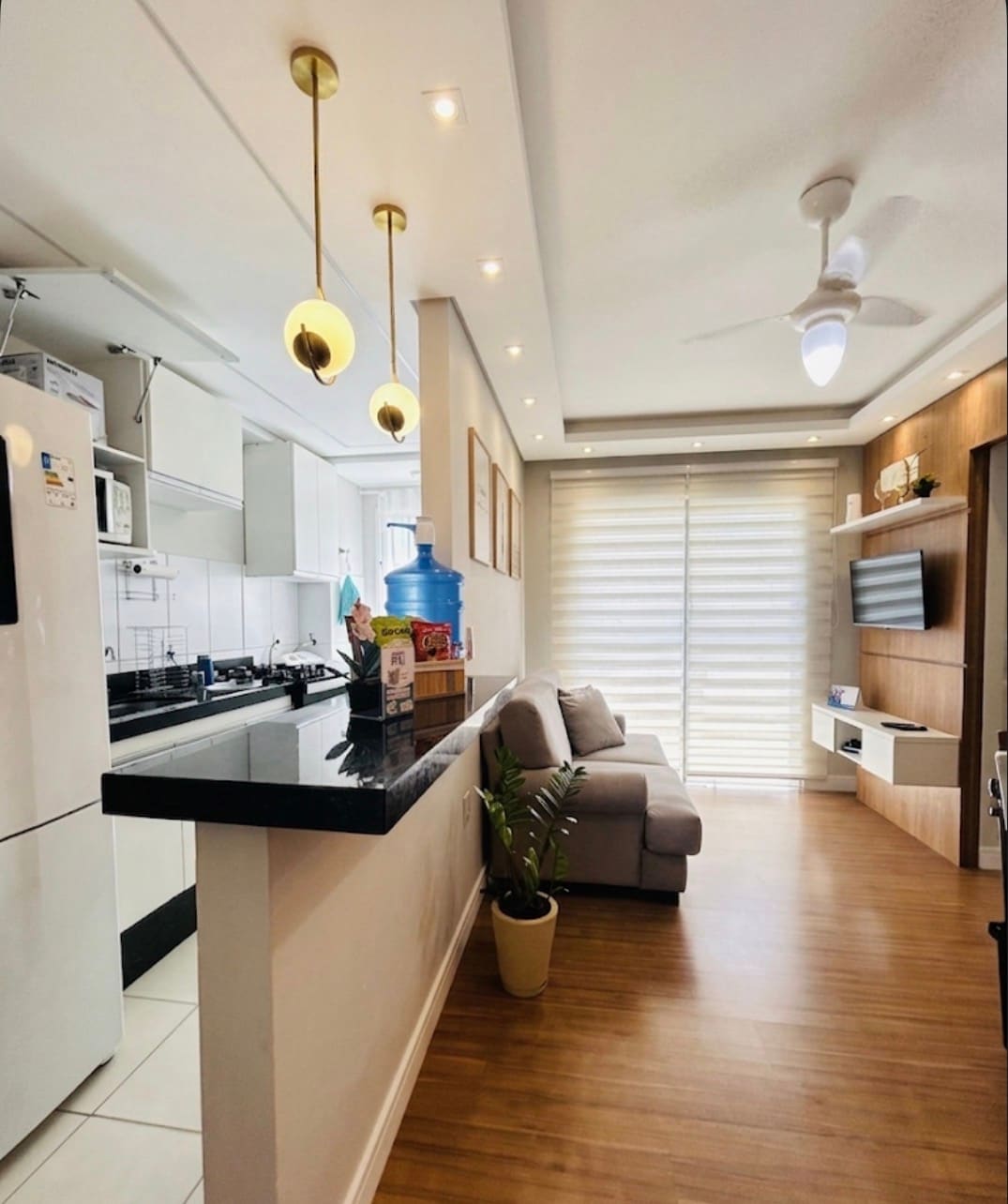 Apt completo,📡 TV completa com+500 canais, filmes e muito entretenimento sofá, 2 quartos, cozinha planejada, Alexa , móveis novos. Eletrodomésticos e utensílios, microondas, fogão adaptado grill, air fryer, lavadora, contém sacada, ferro de passar, ar condicionado, ventilador de teto, inclui Wi-Fi, fechadura eletrônica, incluso água, luz e gás. Iluminação: O apartamento é todo iluminado com luzes de led. 1 cama Queen lençóis 200 fios 100% Algodão e 2 cama Box solteiro.