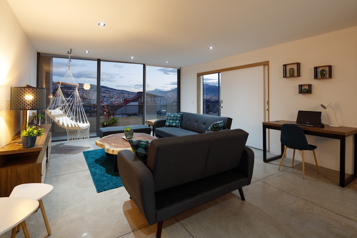 Минималистичный и со всем необходимым для длительного или нескольких дней пребывания. Спроектировано, чтобы у наших гостей было всё, что нужно для приятного проживания. Здесь есть все, что нужно для приготовления пищи, или, если это развлечения, монитор 4K в гостиной и другой в комнате. Тихий, гостеприимный, интимный и спокойный. Его идеальное расположение в окружении университетов, отелей, ресторанов, туристических районов и террасы с прекрасным видом, делают его местом назначения само по себе.