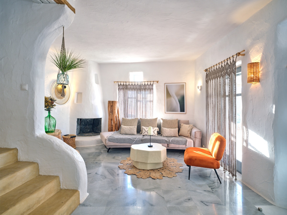 Mia Villa — это уютный просторный 2-этажный дом площадью 140 кв. м, вмещающий до 5 человек, наполненный положительной энергией, расположенный в живописной деревне Марписса, известной своей богатой культурной жизнью, с уважением к эстетике места и гармонии окружающей среды. Идеальный выбор для семей с детьми, пар или групп друзей, ищущих покой и отдых. Из бассейна открывается панорамный вид на холмы Марписы и песчаный пляж Молоса.