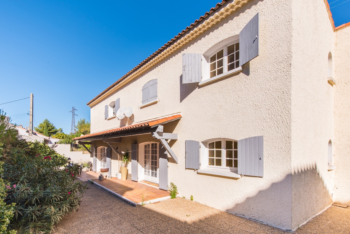 Maison entièrement face à la mer, plein sud , 150m2 sur 2 niveaux avec piscine 10x 3 m .Deux plages , juste en bas,à 4 minutes à pieds. Salon contemporain avec baie vitrée à galandage ouvrant sur une terrasse couverte de 30m2, tous les espaces de vie ont vue sur la mer. Au Rdc, 3 chambres , Literies d’excellentes qualité, climatisation et stores occultants, avec accès à la terrasse de 40m2 ,piscine, jardin. Pas de nuisance , ni voiture ni train.