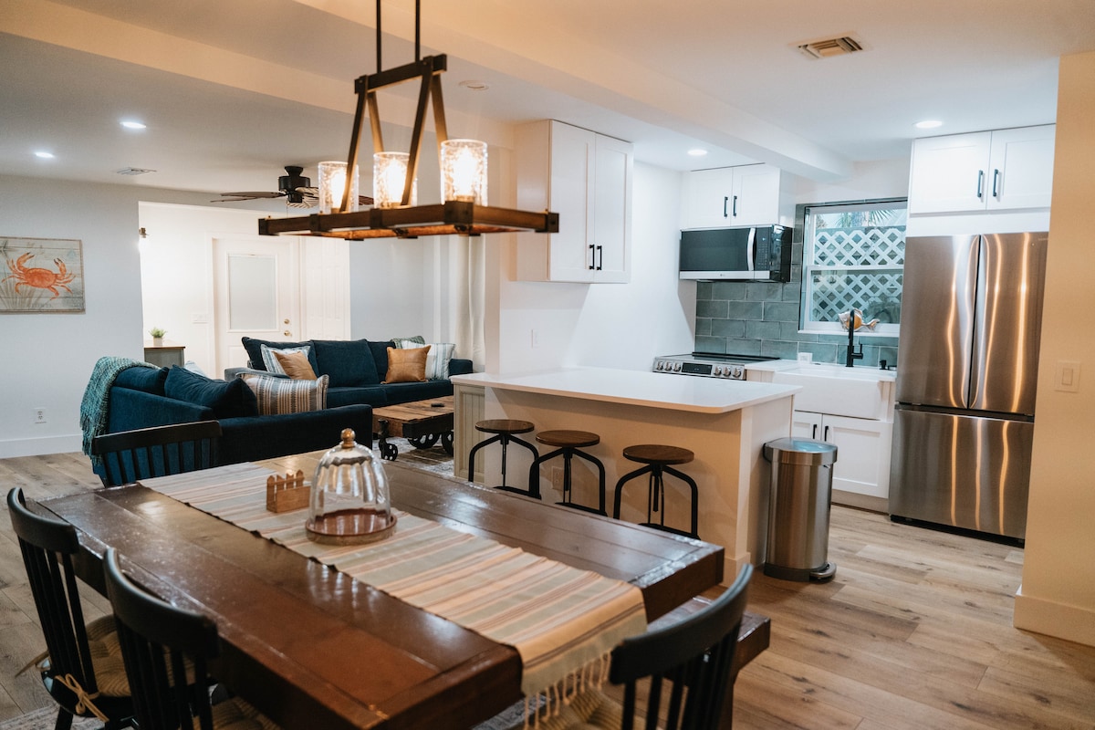 Отличное расположение! Расслабьтесь в этом уникальном и спокойном месте, расположенном в эксклюзивном жилом районе и всего в 1 миле от общественного пляжа Хобе-Саунд. Эта 1 кровать с 1 полноценной ванной комнатой и собственным патио оборудована раскладным диваном в гостиной, вмещающей до 4 гостей . Удобства: полноценная кухня, прачечная, Wi-Fi, два 50-дюймовых смарт-телевизора, кабельное телевидение, парковка на 2 автомобиля и более. Рестораны, магазины и другие достопримечательности в шаговой доступности.